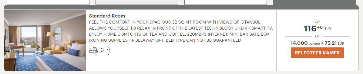 Met deze twee overnachtingen haal ik een behoorlijke waarde uit mijn “Free Weekend Night” voucher. Daarbij moet ik opmerken dat het onwaarschijnlijk is dat ik ooit € 669,60 zou betalen voor slechts twee overnachtingen in Istanbul.
