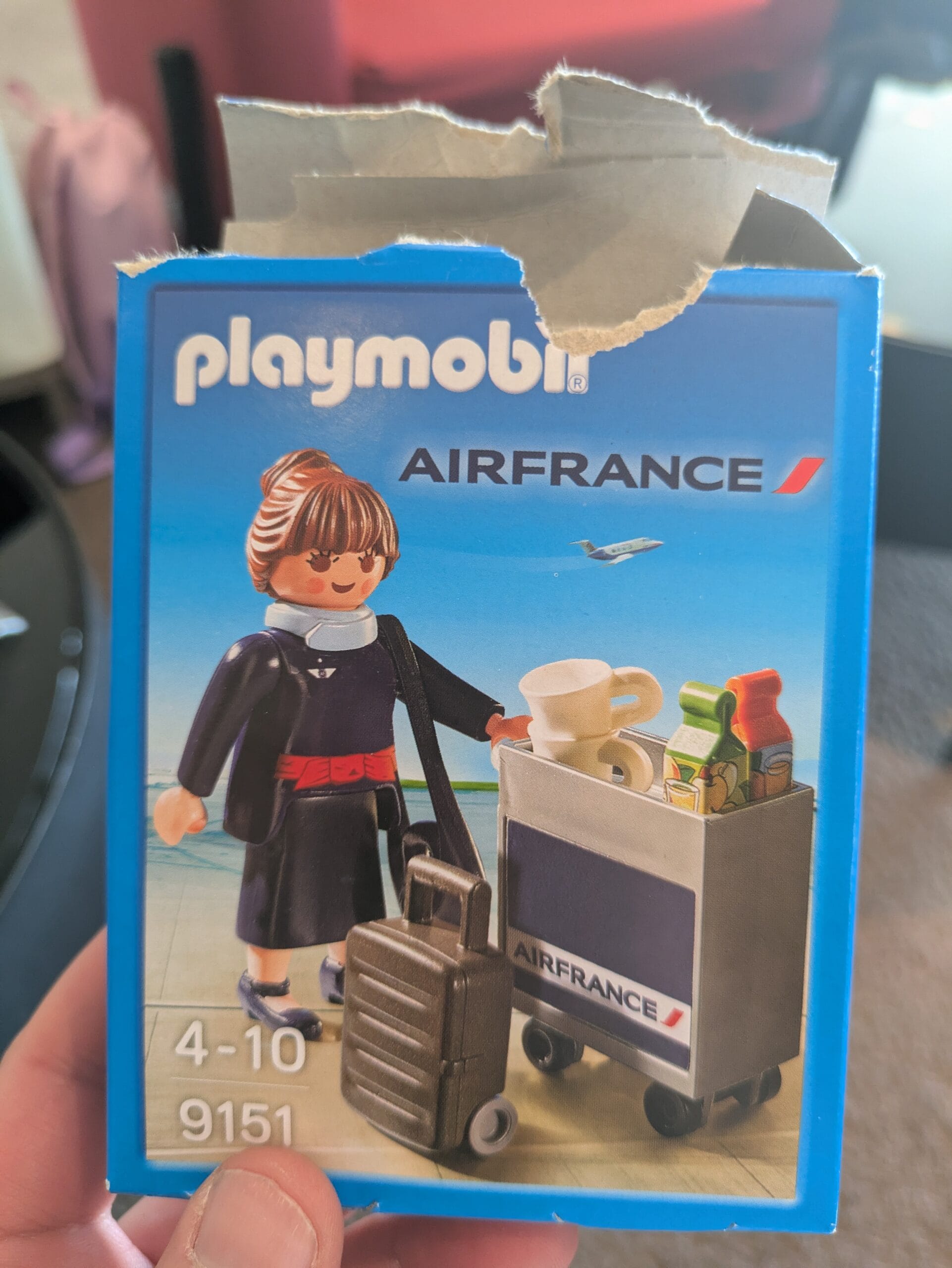 - De La Première lounge is niet erg interessant voor een kind van 4 jaar oud. Ik informeerde of er in de terminal wellicht een leuke speelplek zou zijn. Dit viel volgens het lounge personeel tegen. Na ongeveer 30 minuten kwam de medewerker met een Air France tas terug: een boek, een kleurboek met potloden en een Playmobil set van Air France.