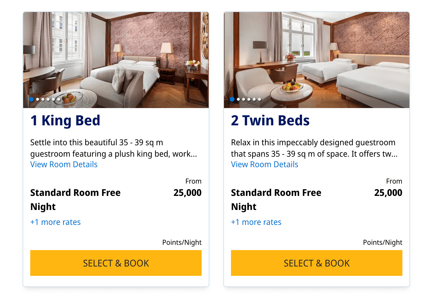 Hierdoor kun je al voor 3.500 punten een gratis overnachting boeken. Een top hotel, zoals Park Hyatt Vienna, boek je al vanaf 25.000 punten. Ben je nieuwgierig waar je zoal kunt verblijven en voor hoeveel punten? Dit kun je hier terugvinden. Je kunt hier filteren op het aantal punten, merk, etc.