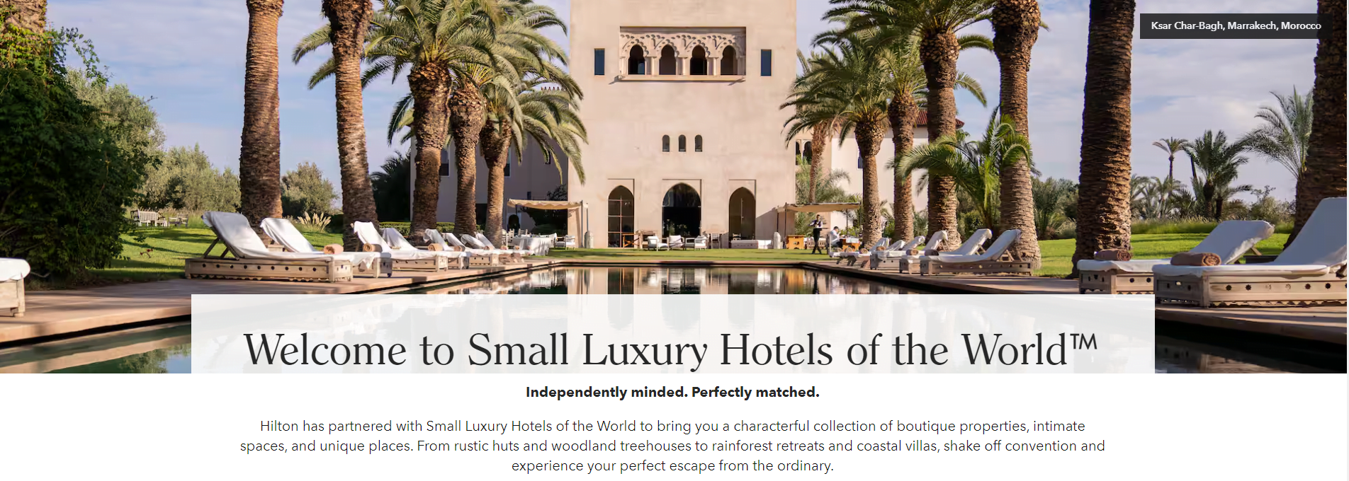 Small Luxury Hotels of the World is een groep met ca. 560 onafhankelijke luxe boutique hotels. Deze hotels worden zelfstandig gemanaged en SLH is een platform waarop je deze hotels kunt boeken. Voorheen had SLH een samenwerking met World of Hyatt, maar eerder dit jaar heeft Hilton Honors dit overgenomen.