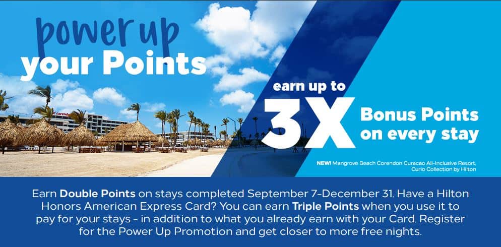 Een nieuwe promotie bij Hilton Honors: Power Up. Tussen 7 september 2021 en 31 december 2021 kun je dubbele punten verdienen op je verblijf bij een Hilton Honors hotel. De registratie voor de promotie is inmiddels geopend.