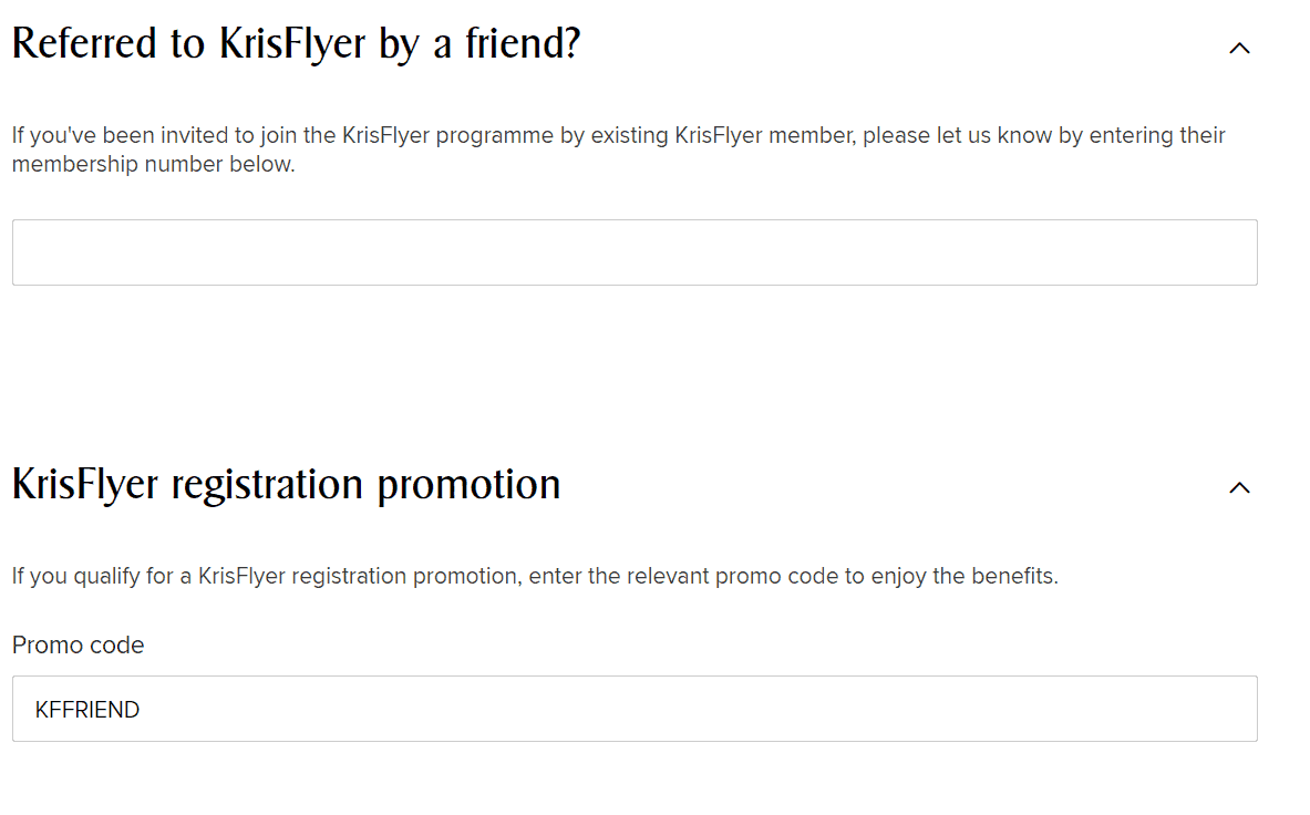 Als je nog geen lid bent kun je 800 miles verdienen door je aan te melden met een referral code van een bestaand lid. De referral code is het Krisflyer lidmaatschapsnummer van dit bestaande lid. Het is daarnaast belangrijk dat je de promo code “KFFRIEND” invult.