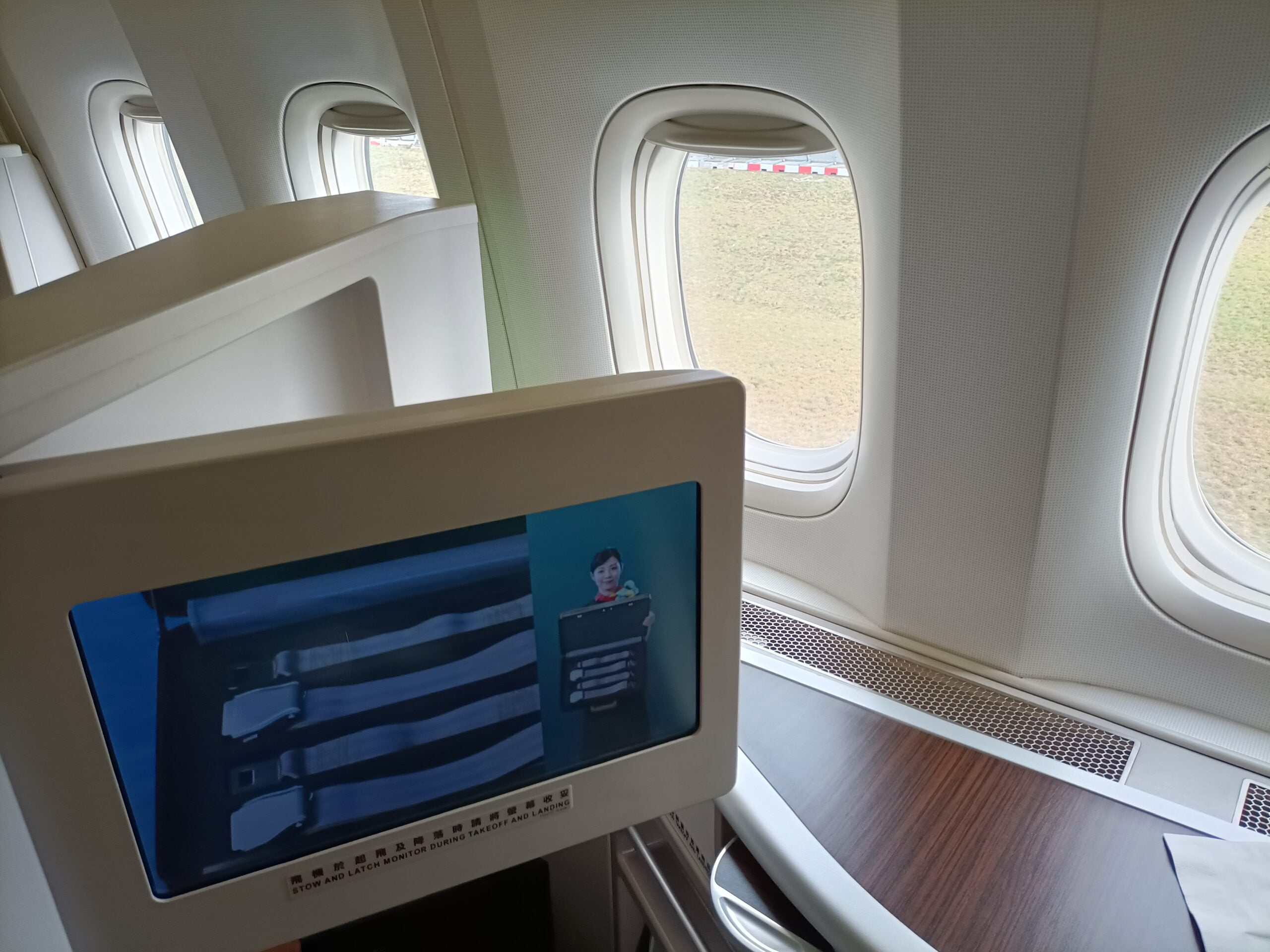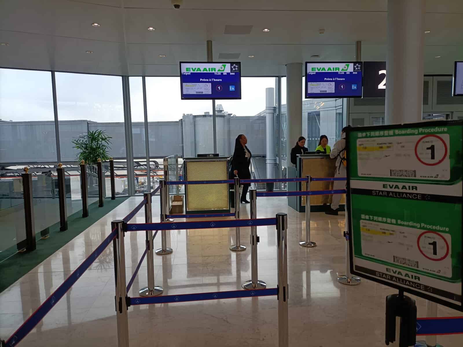 EVA Air doet een poging om het boarding proces zo goed mogelijk te laten verlopen, inclusief instructies met zone nummers op de boarding passes. Dit lukt redelijk en met enige vertraging is het tijd om aan boord te gaan.