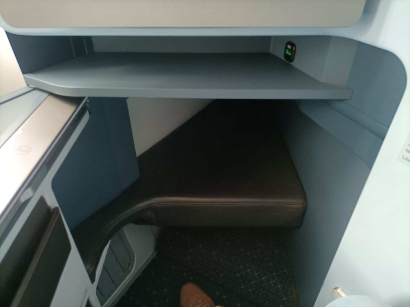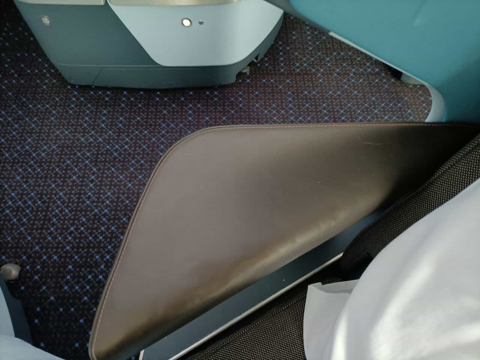 De hoeveelheid ruimte voor je voeten kan een Business Class stoel maken of breken. Het bepaalt in grote mate of je comfortabel slaapt of niet. De voetenruimte is hier voldoende: het is niet overdreven ruim, maar genoeg om comfortabel te kunnen liggen.