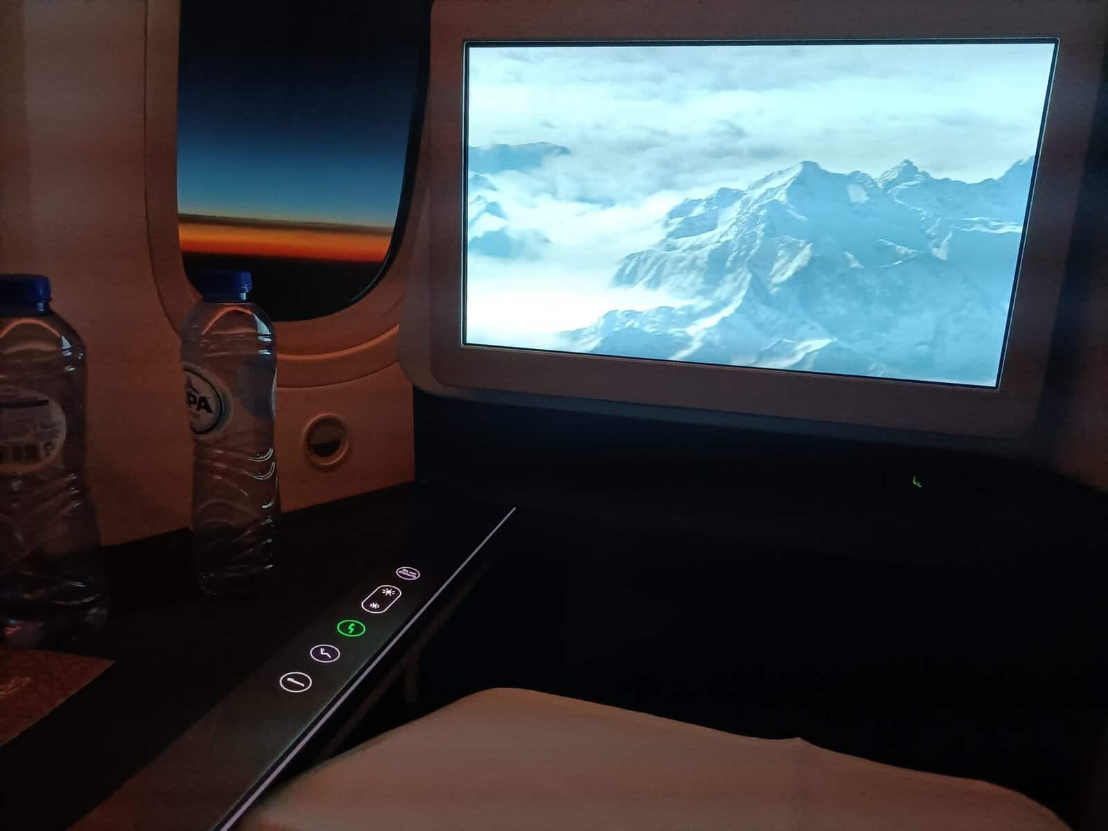 Na de uitgebreide maaltijdservice kijk ik voornamelijk nog een paar films. Ik probeer wat te slapen, maar meestal lukt me dit maar matig in het vliegtuig. Daarom besluit ik gewoon te ontspannen en te genieten van de vlucht. Ondanks het feit dat iedereen slaapt loopt het cabine personeel regelmatig door de cabine om te checken of mensen nog iets nodig hebben. Verder staat er een opstelling met snacks in de galley en voorin de Business Class cabine. Goede service!