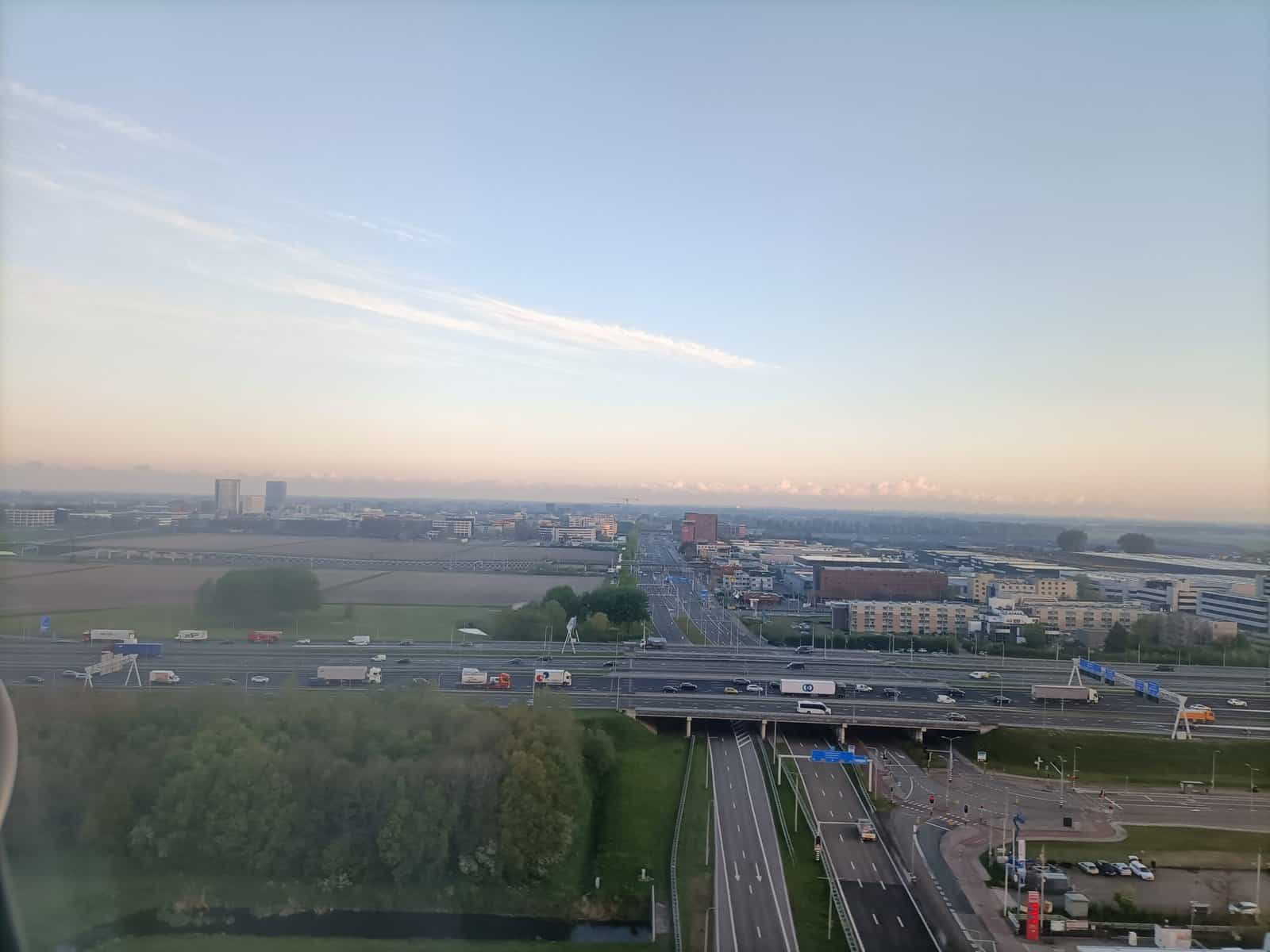 Vlak voor de touchdown op Schiphol zien we dat Nederland inmiddels langzaam ontwaakt en het verkeer al weer op gang gekomen is.