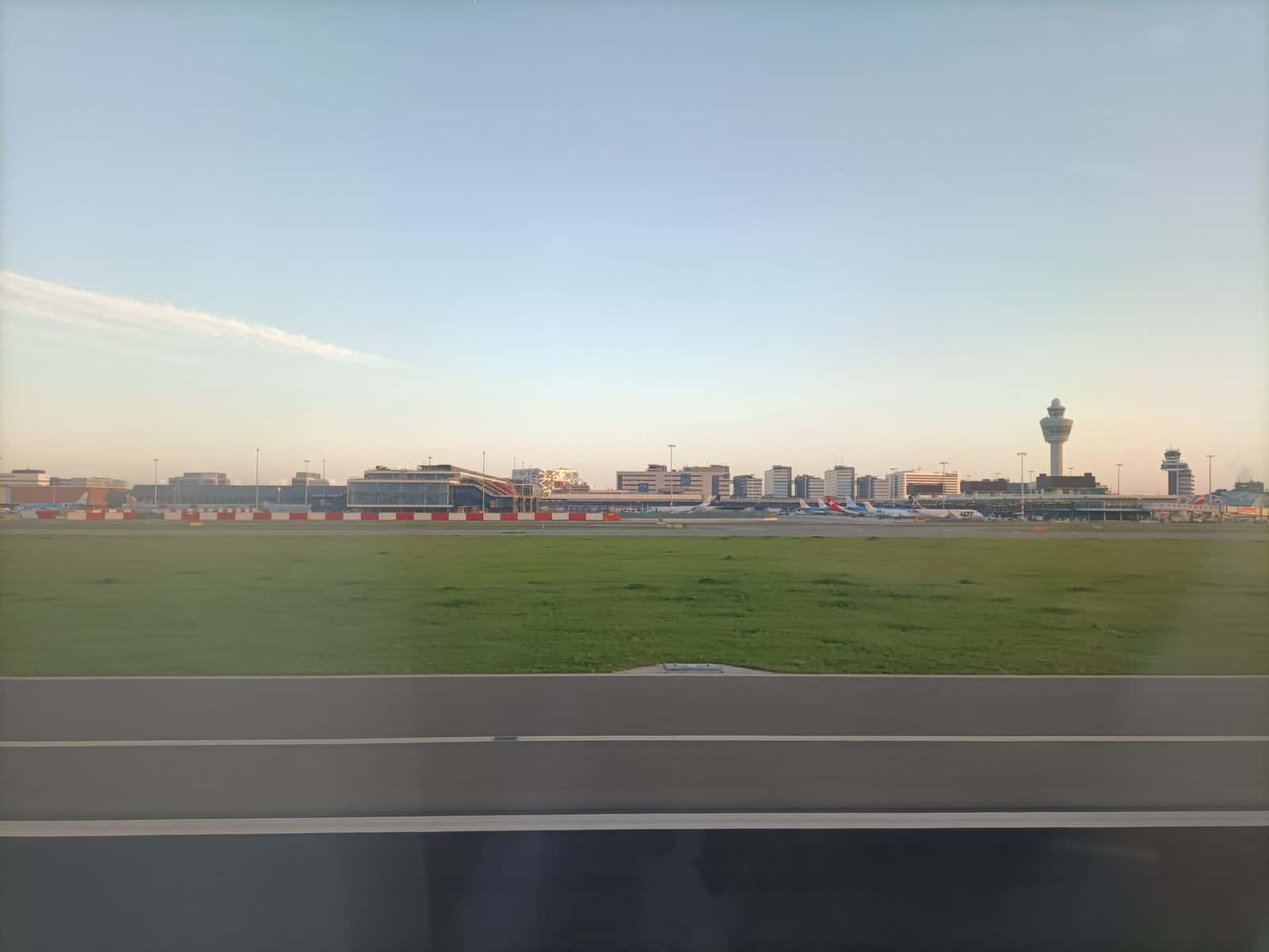 De landing verloopt verder soepel en rond zeven uur komen we aan op de luchthaven. Welkom op Schiphol.