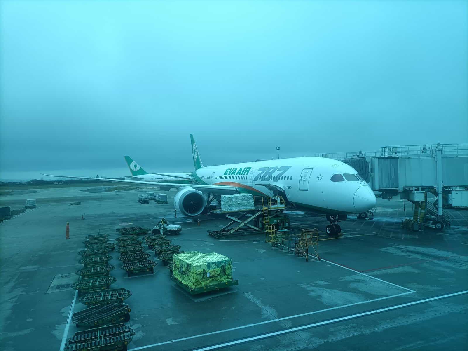 De lounges van EVA Air in Taipei zijn helaas veel te druk. Nadat ik hier een aantal uren heb gezeten is het tijd om aan boord te gaan van de Boeing 787 van EVA Air.