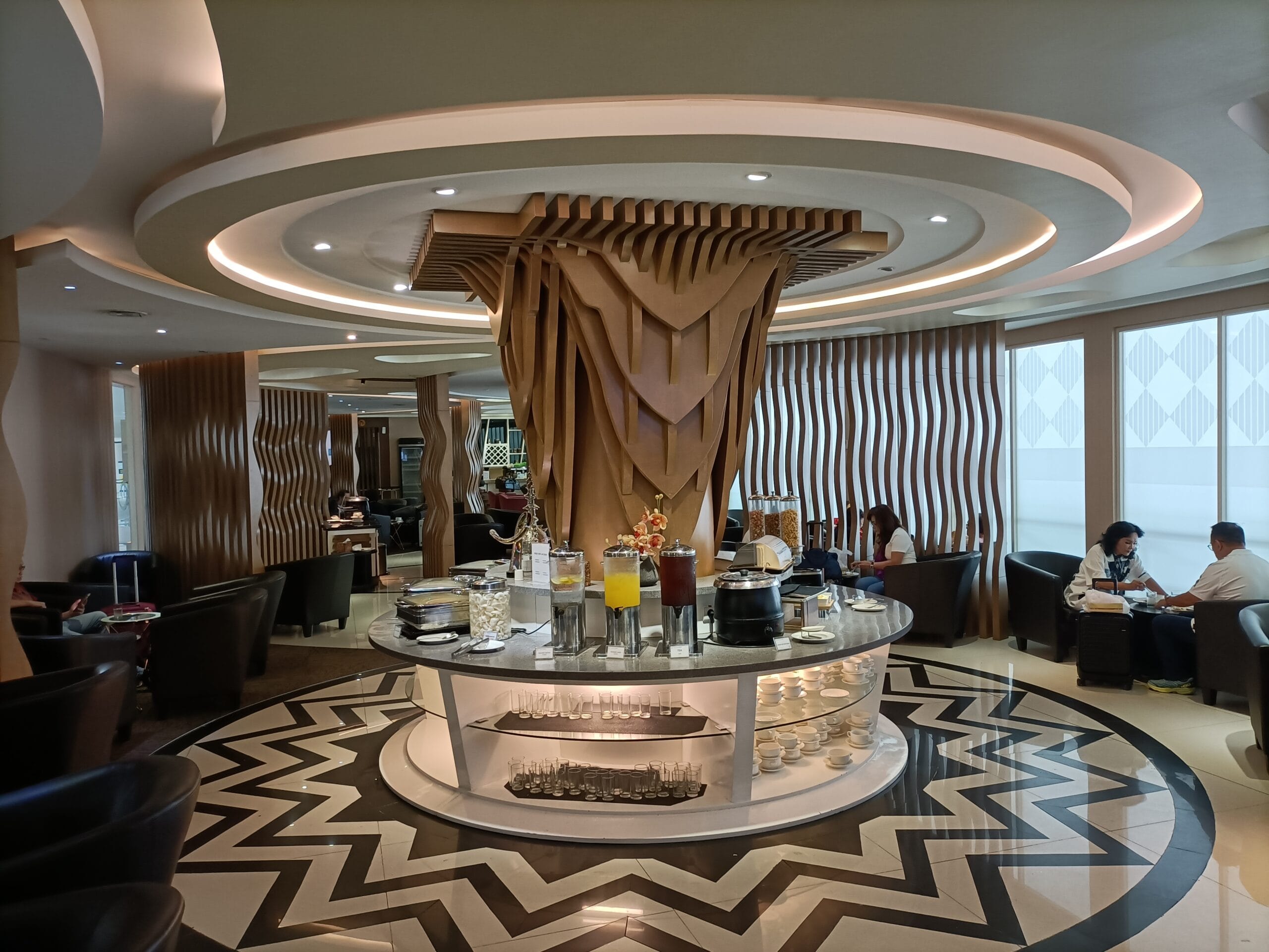 Als Business Class passagier heb ik toegang tot de enige lounge in het internationale deel van de luchthaven: de Concordia Premier lounge. De lounge is eenvoudig en oogt gedateerd. Er is een buffet met voornamelijk lokale gerechten, ijsthee, limonade en koffie. Aanvankelijk is het een redelijk rustige plek.