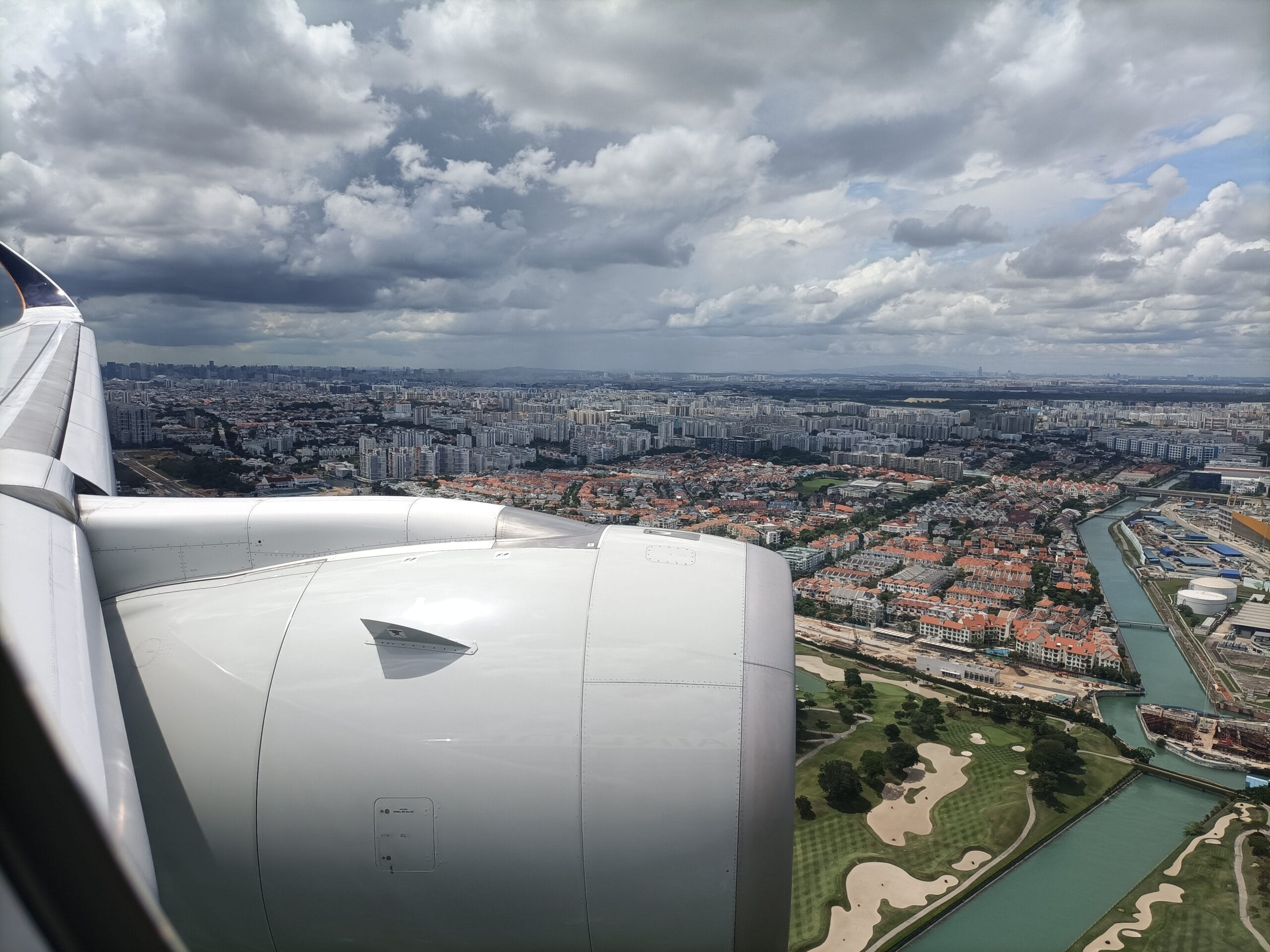Wifi is gratis bij Singapore Airlines. Daarnaast is het In Flight Entertainment systeem behoorlijk uitgebreid. Maar omdat de vlucht nog geen twee uur duurt is het al snel weer tijd om de daling richting Singapore in te zetten. De captain informeert ons dat we een paar rondjes extra moeten maken vanwege onweer boven Singapore. Na deze extra rondjes komen we veilig en rustig aan in Singapore.
