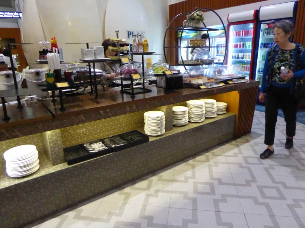 In de lounge is ook een buffet aanwezig, maar dit stelt weinig voor. Ik besluit dan ook om het vrij snel voor gezien te houden in deze lounge. De naastgelegen lounge kan ik bezoeken met mijn Priority Pass.