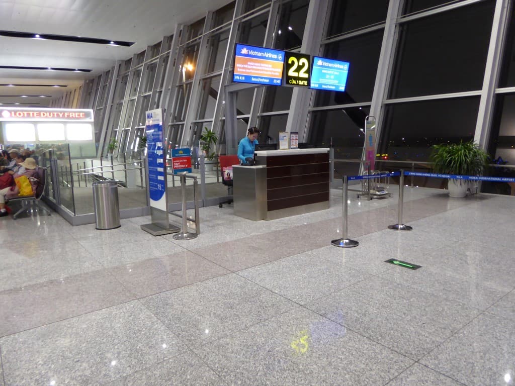 Mijn vlucht vanuit Hanoi vertrekt rond middernacht. Daardoor kan ik nog de gehele dag in Hanoi rondlopen, een superleuke stad. De taxi zet me rond negen uur ’s avonds af op het moderne vliegveld van Hanoi. Bij de incheckbalie staan drie mensen voor mij te wachten. Normaliter ben je dan binnen no-time aan de beurt, maar in dit geval sta ik toch nog ongeveer 20 minuten te wachten.
