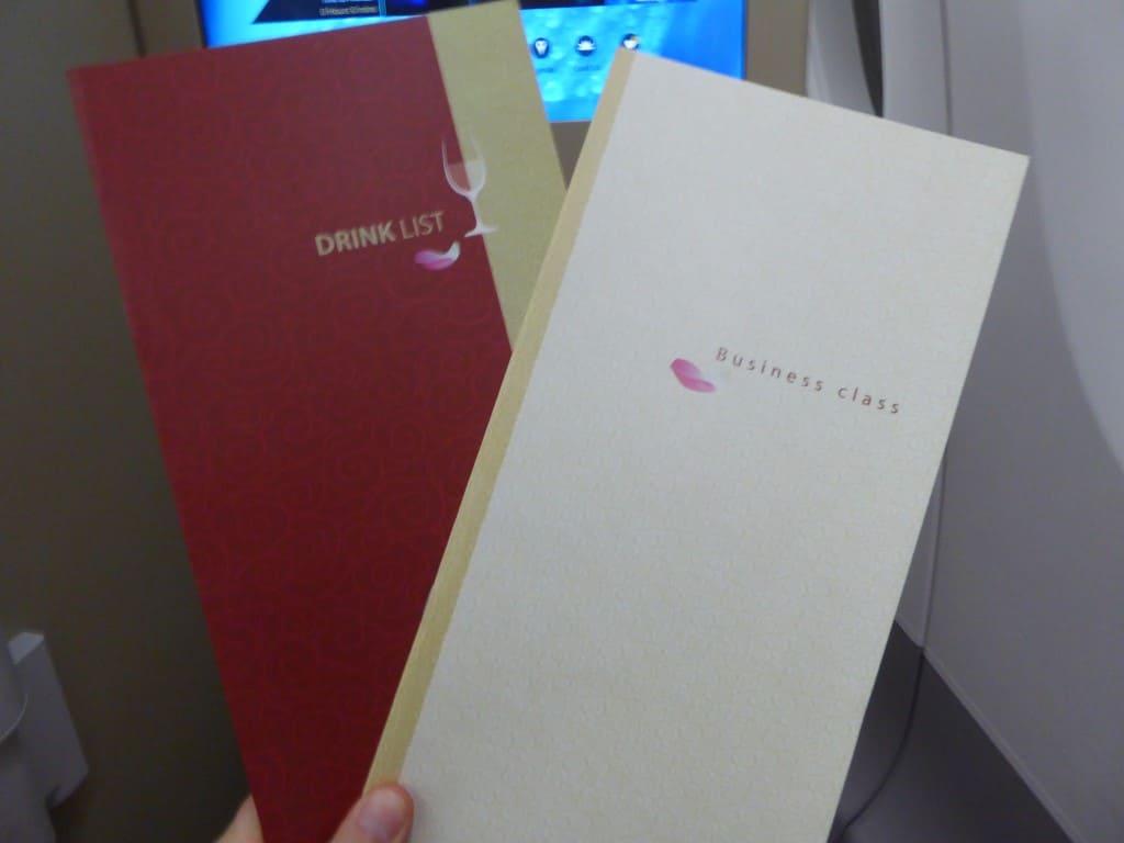 Snel nadat ik plaats heb genomen in mijn stoel komt een vriendelijke stewardess naar me toe om een welkomstdrankje aan te bieden. Ik kies voor een glas champagne. Vietnam Airlines schenkt Heidsieck & Co Monopole en gebruikt daarvoor een echte flûte. Dat zie je vandaag de dag niet zo vaak meer in Business Class. Naast de champagne krijg ik een warm doekje aangeboden.