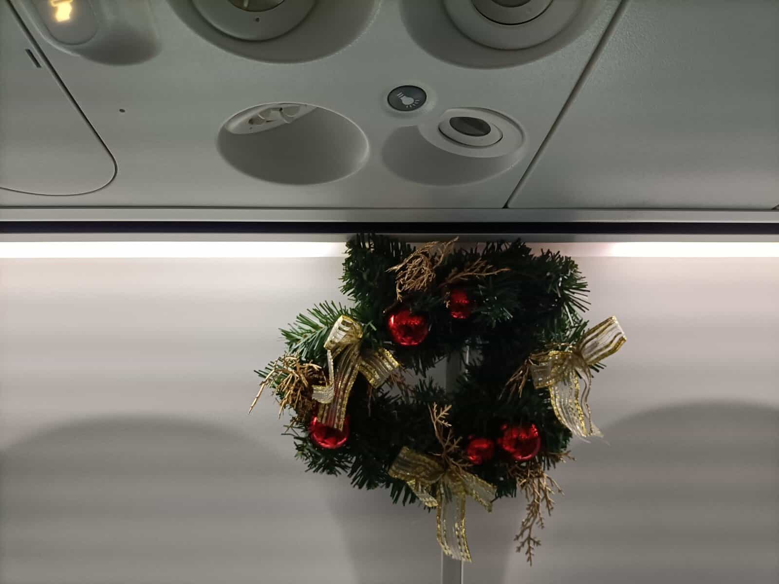 We vertrekken te laat. Hierdoor komen we laat aan in Singapore, terwijl de oorspronkelijke connectie van 50 minuten al krap was. Deze vlucht verloopt verder niet bijzonder. Een leuk detail is dat Singapore Airlines alle toestellen in de kerstsfeer brengt.