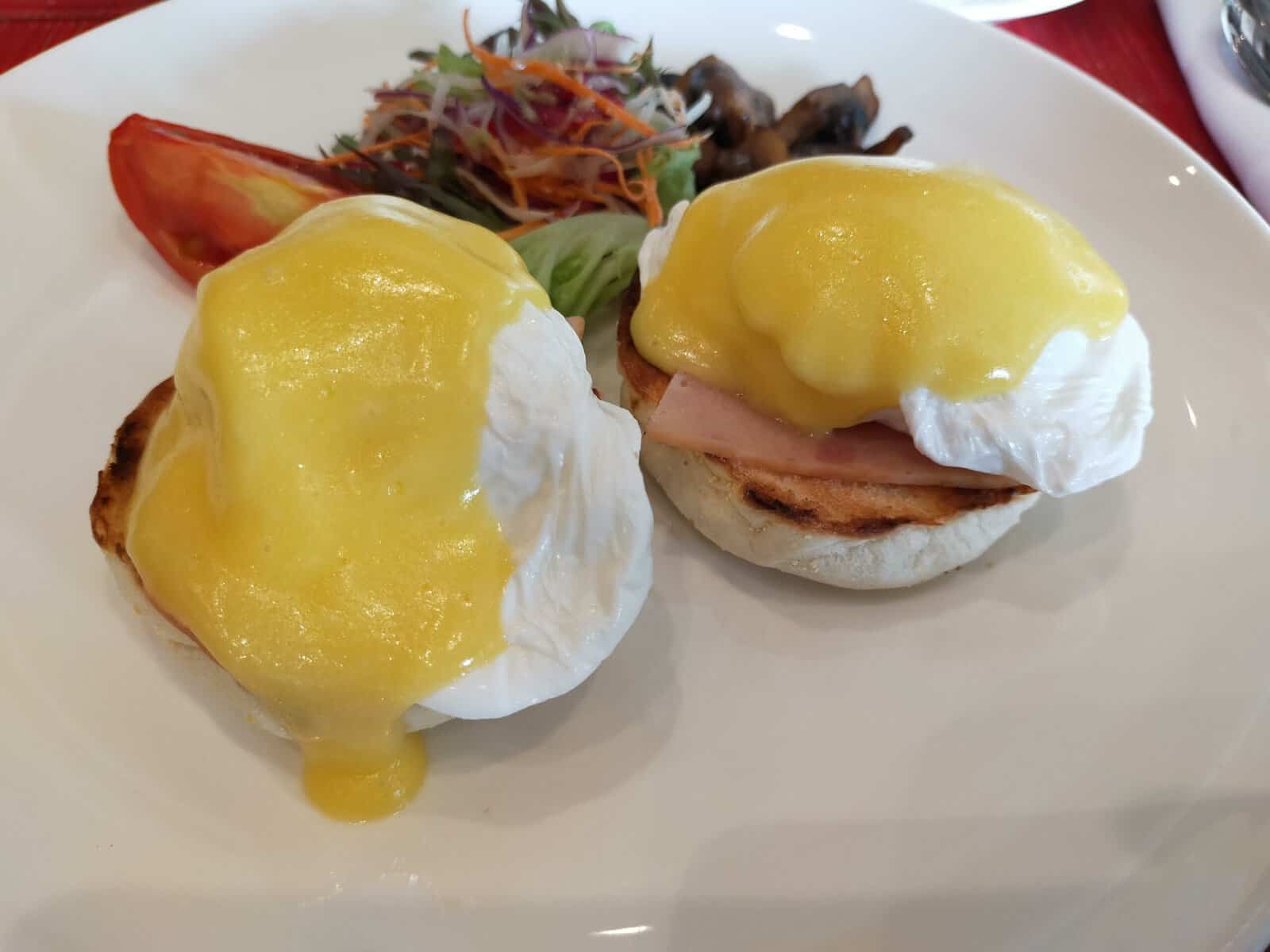 Naast de gerechten die je vers kunt laten bereiden is er ook nog een mogelijkheid om á la carte gerechten te bestellen. En dus ga ik voor mijn favoriet: Eggs Benedict!
