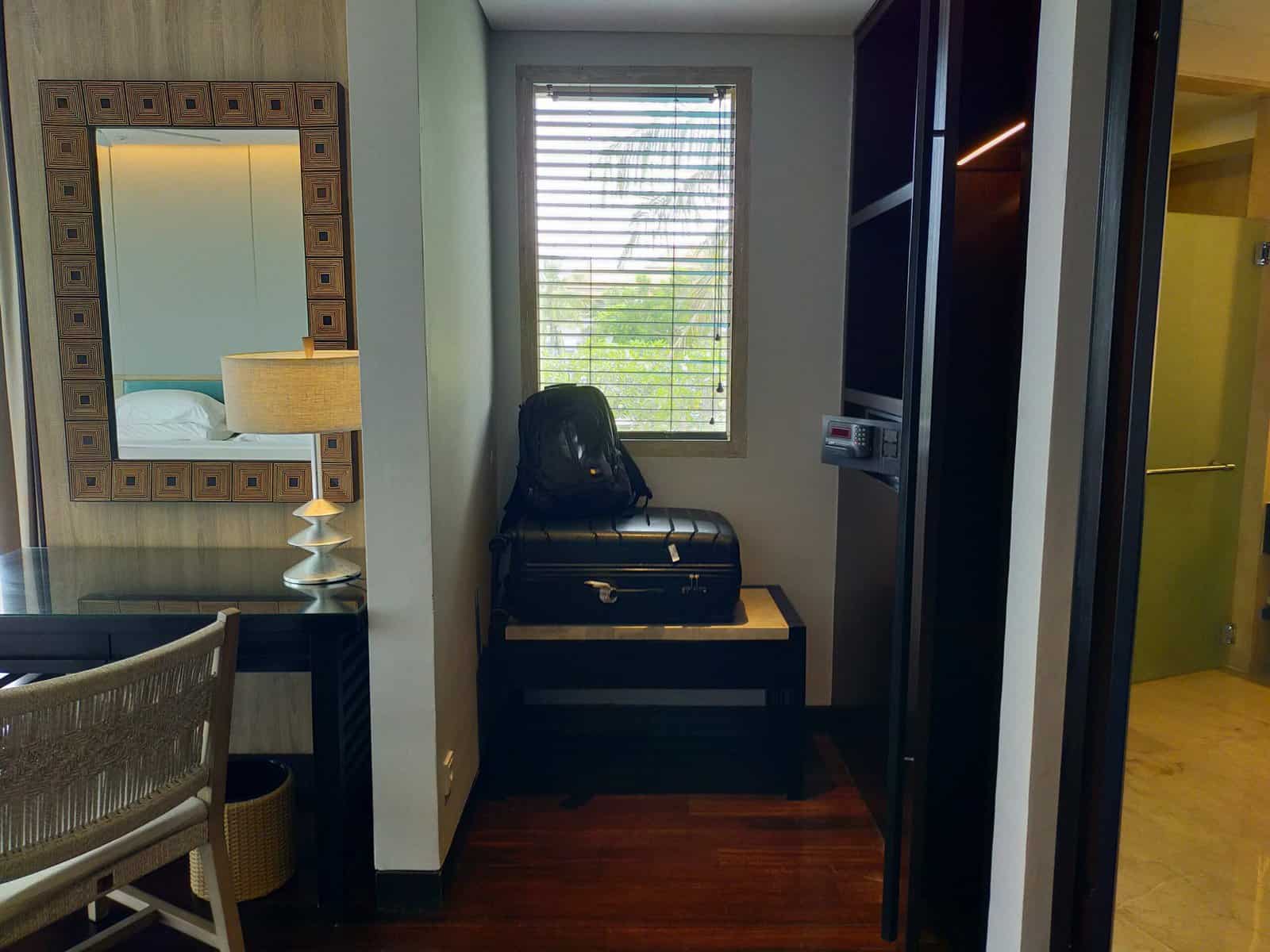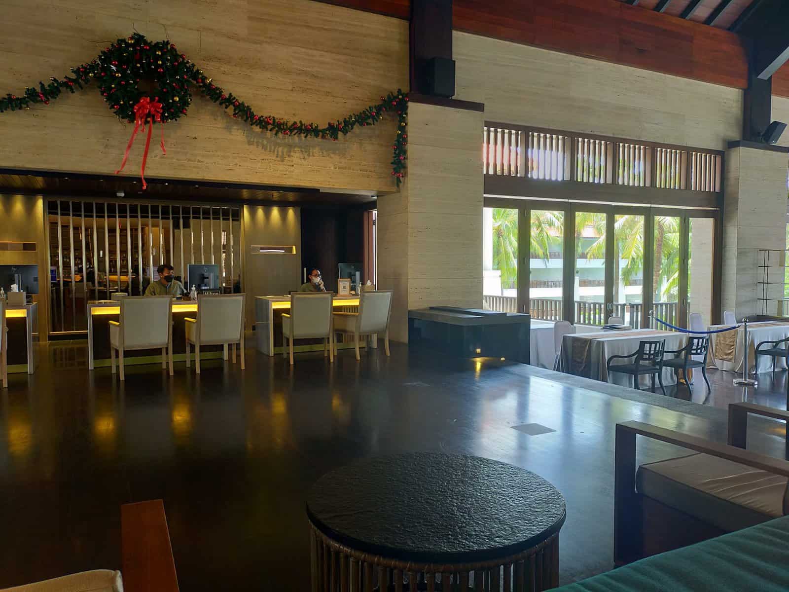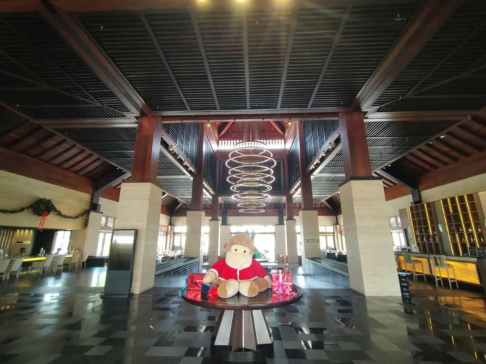 Nadat onze Grab taxi grondig is gecontroleerd door de vriendelijke beveiligers rijden we richting de lobby. Onze koffers worden daar op een bagagekar geladen en wij lopen door naar de lobby om in te checken.