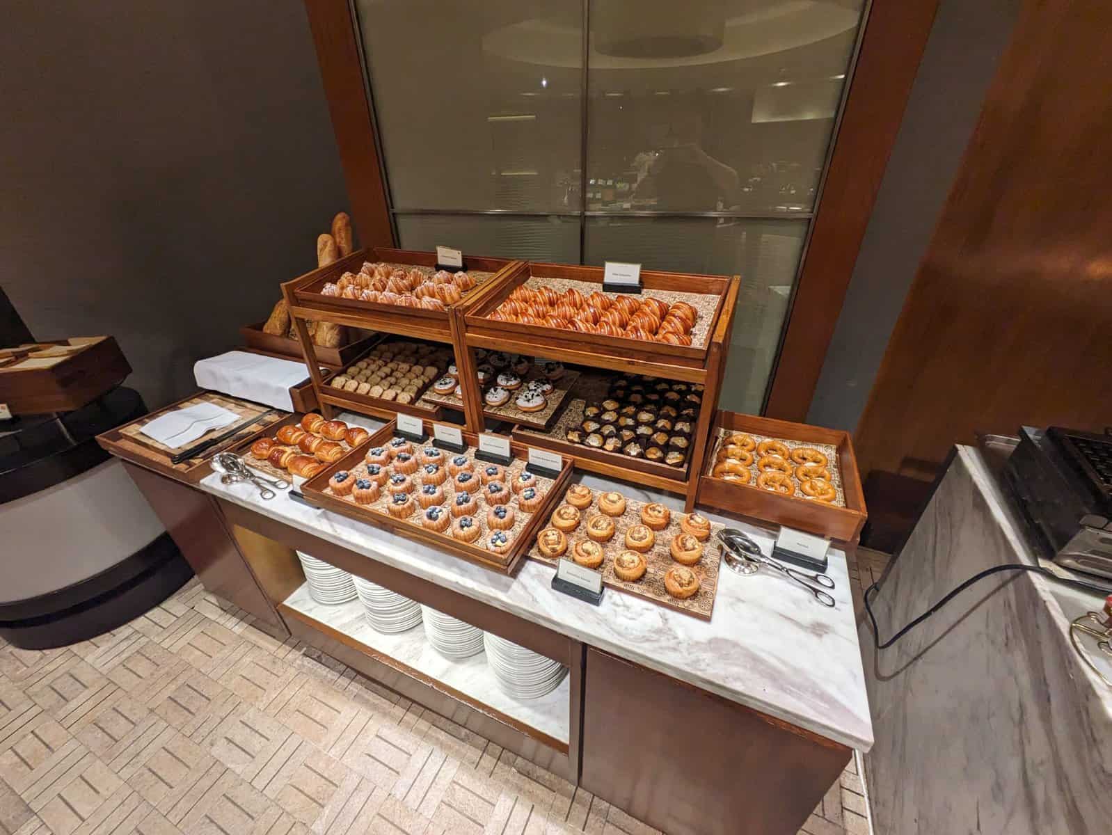 Liever een broodje? Een ruim aanbod aan zoete en hartige broodjes is beschikbaar, inclusie pretzels.