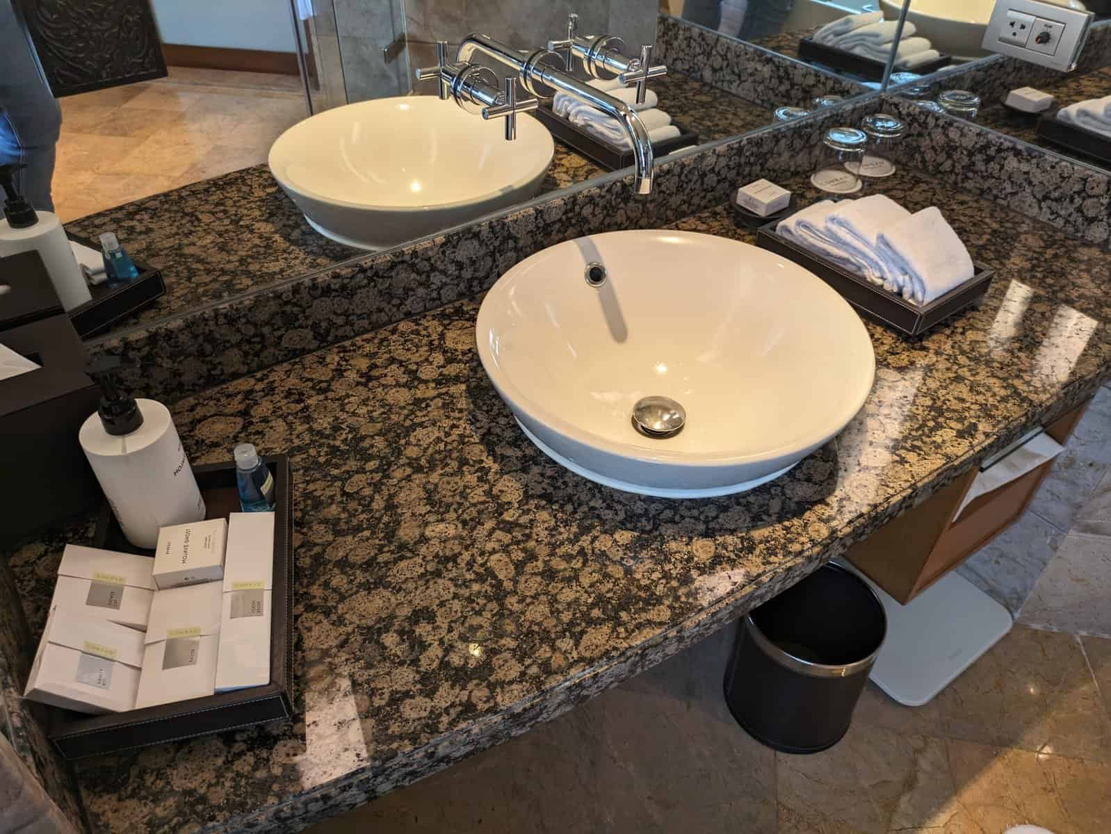 Er zijn voldoende amenity’s aanwezig in de badkamer, zoals je verwacht van een Conrad hotel.