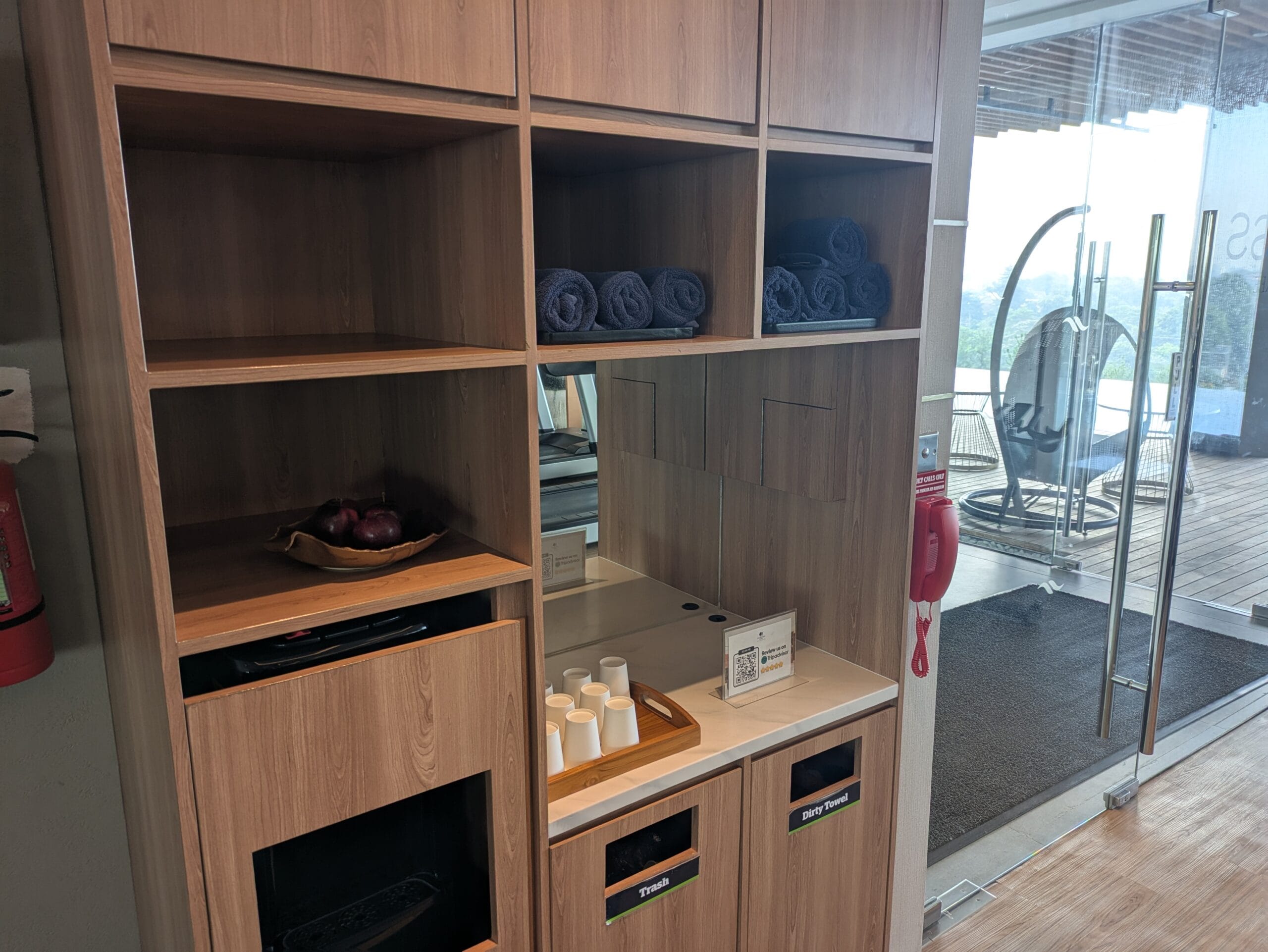 De fitnessruimte is uitgerust met moderne cardio apparatuur van Life Fitness. Het is geen grote ruimte, maar het is lekker koel en fris. Handdoeken, fruit en gekoeld water zijn een prettige aanvulling. Dit wordt ook goed onderhouden, wat lang niet altijd het geval is bij hotels van hetzelfde prijsniveau.