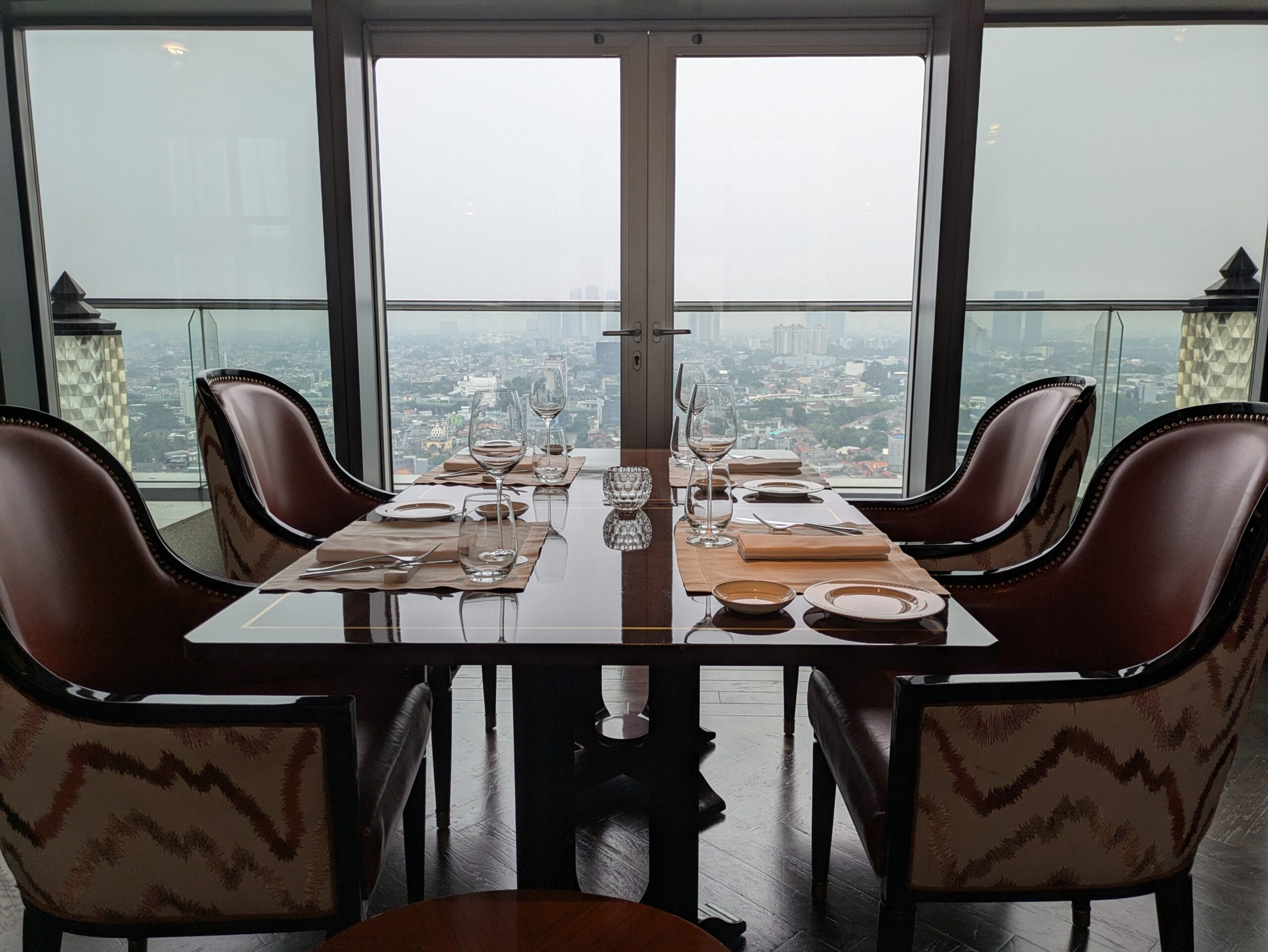 Het restaurant past qua stijl en kwaliteit goed bij het hotel en biedt fraaie uitzichten over Jakarta. De aanwezigheid van een prachtige zwarte vleugel maakt het wat mij betreft af. Over de service in het restaurant kan ik zelf helaas niets zeggen omdat ik hier niet heb gedineerd.
