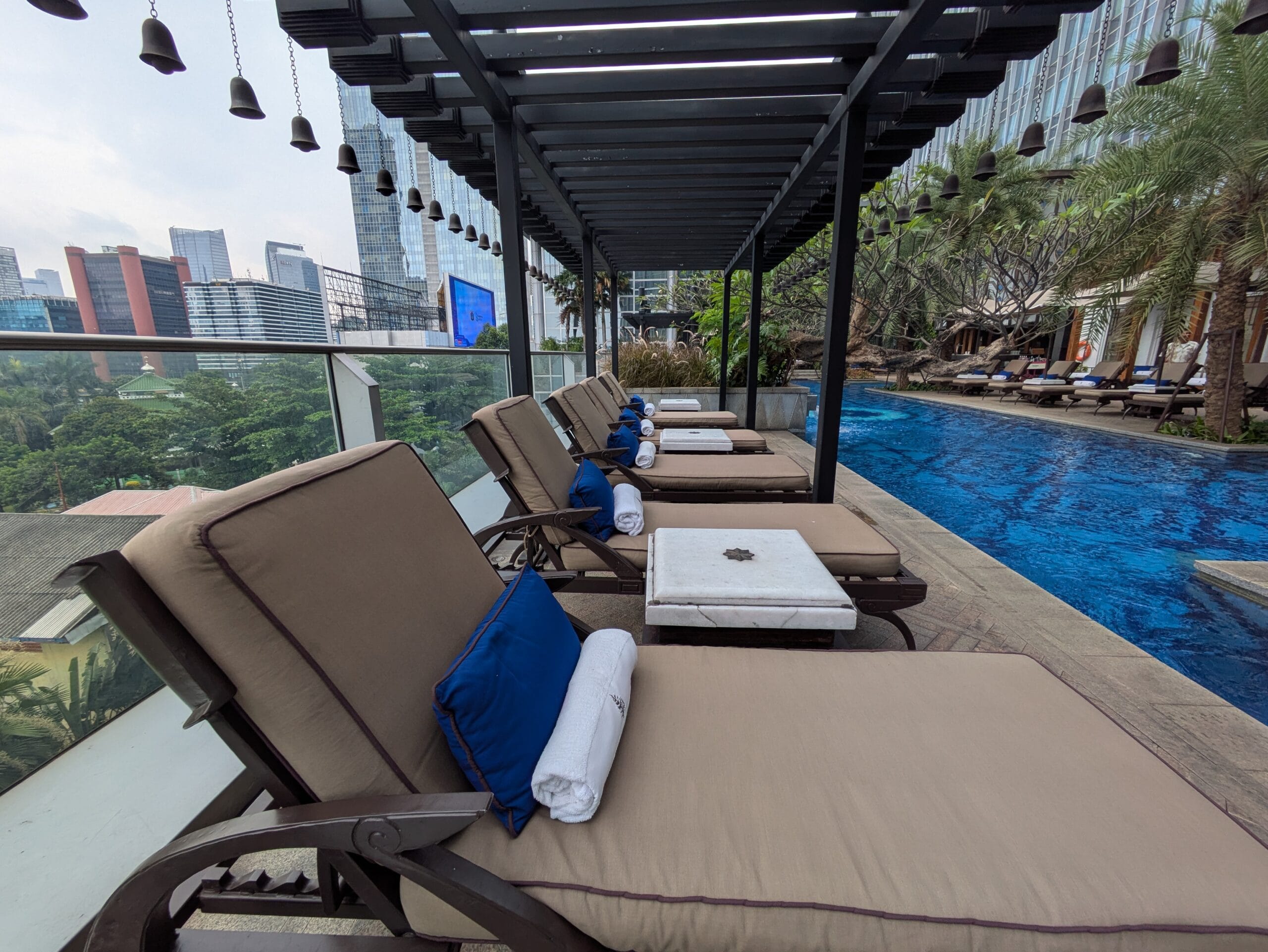 Het is knap hoe het hotel er in geslaagd is om een resort gevoel te creëren met het zwembad. Veel hotels in Jakarta stellen met het zwembad wat teleur. Er zijn uitzonderingen zoals het Park Hyatt en Doubletree Diponegoro. Four Seasons Jakarta doet dit ook uitstekend: een ruim zwembad, wat nog steeds functioneel kan zijn om baantjes te trekken. Het ziet er daarnaast goed uit, waardoor je bijna vergeet dat je midden in de stad in een hotel met 20 verdiepingen zit.