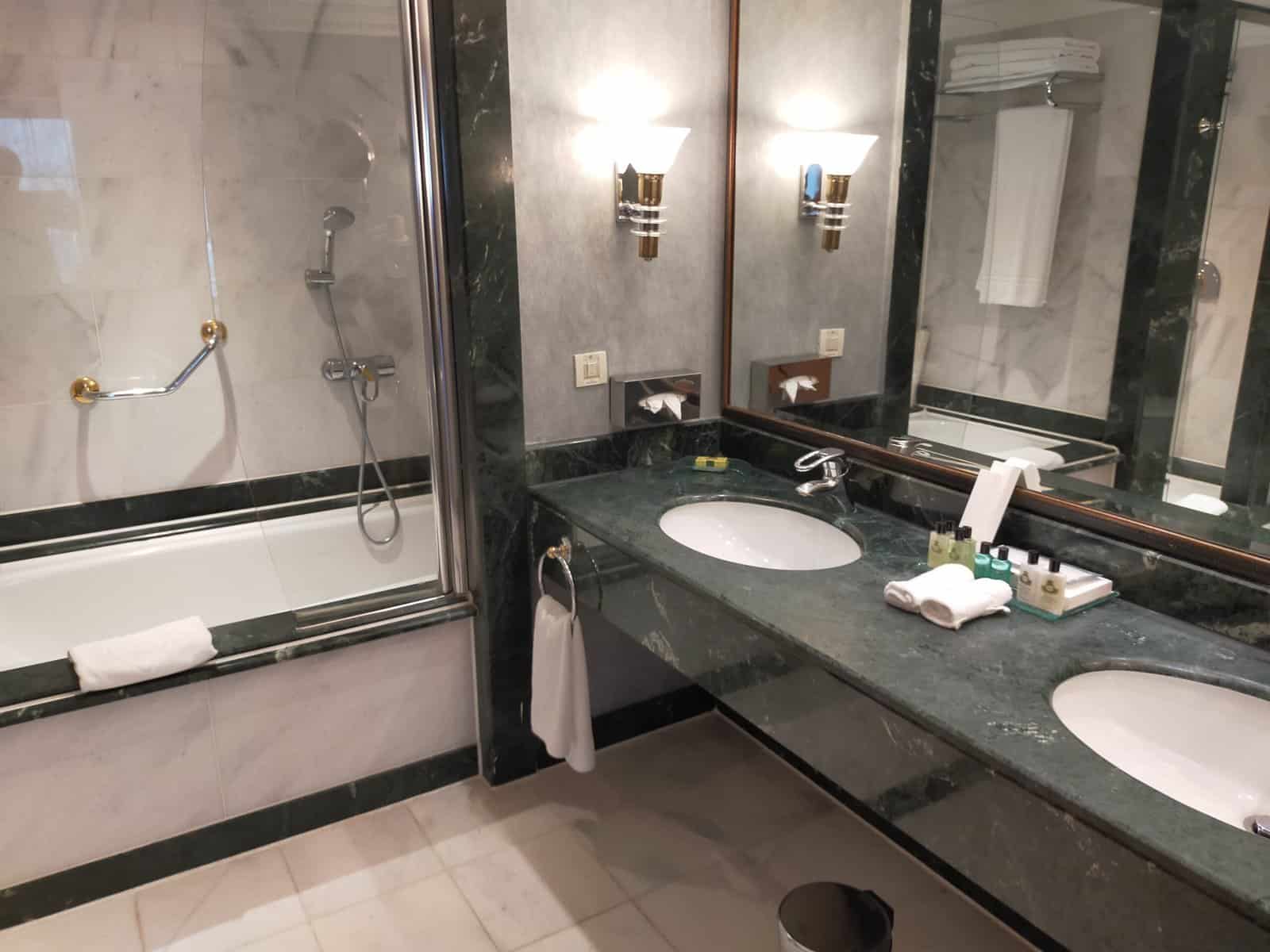 De badkamer is mooi klassiek ingericht en behoorlijk ruim. De gebruikelijke Intercontintental Agraria badkamer accessoires worden gebruikt. Ondanks dat de badkamer ruim is en chique aandoet kun je hier wel zien dat alles wat ouder is.