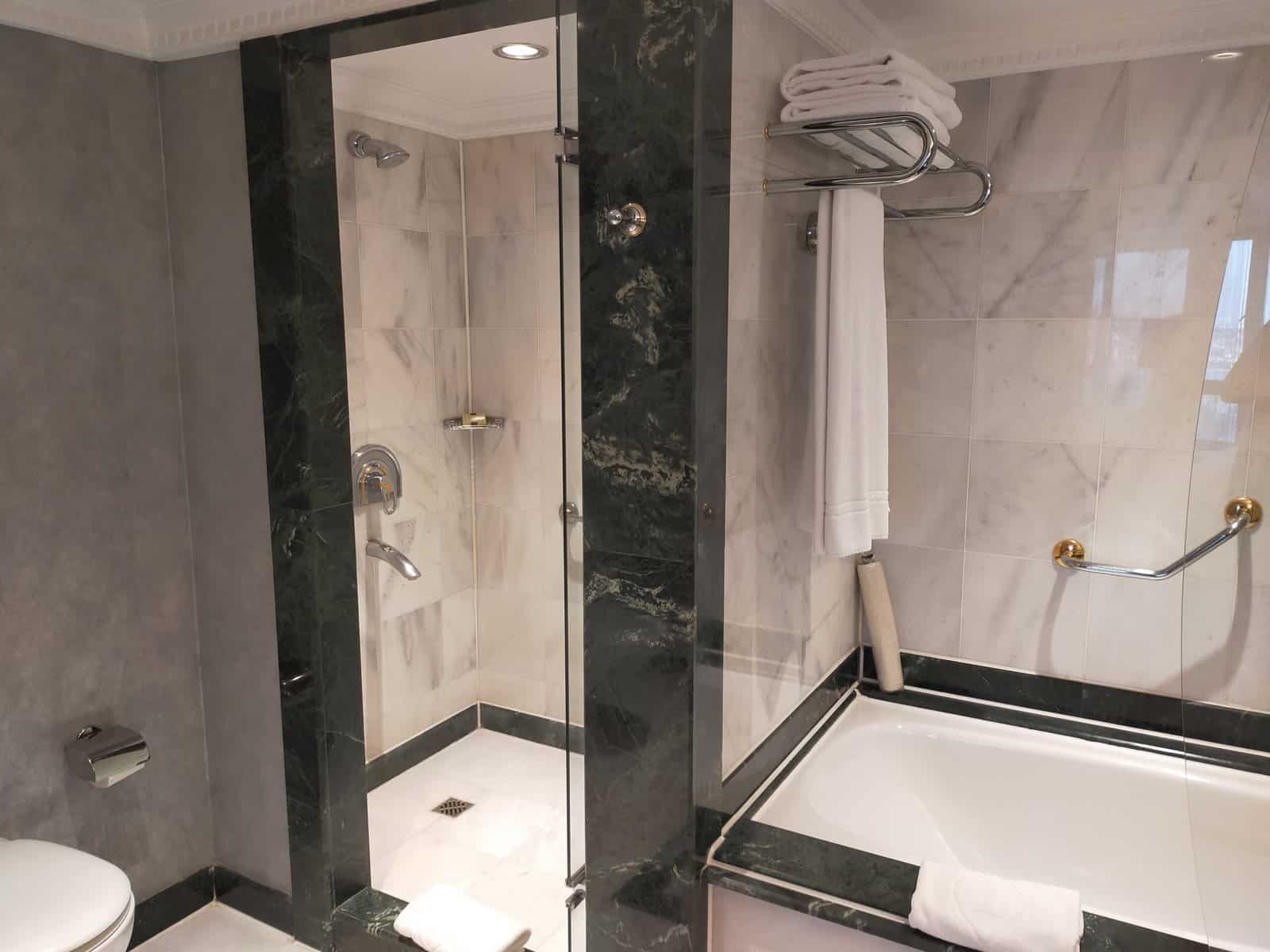 Een voordeel van de suite ten opzichte van de reguliere kamers is dat de badkamer over een separate douche beschikt. Bij de andere kamers moet je in het bad douchen, wat ik persoonlijk niet meer van deze tijd vind.