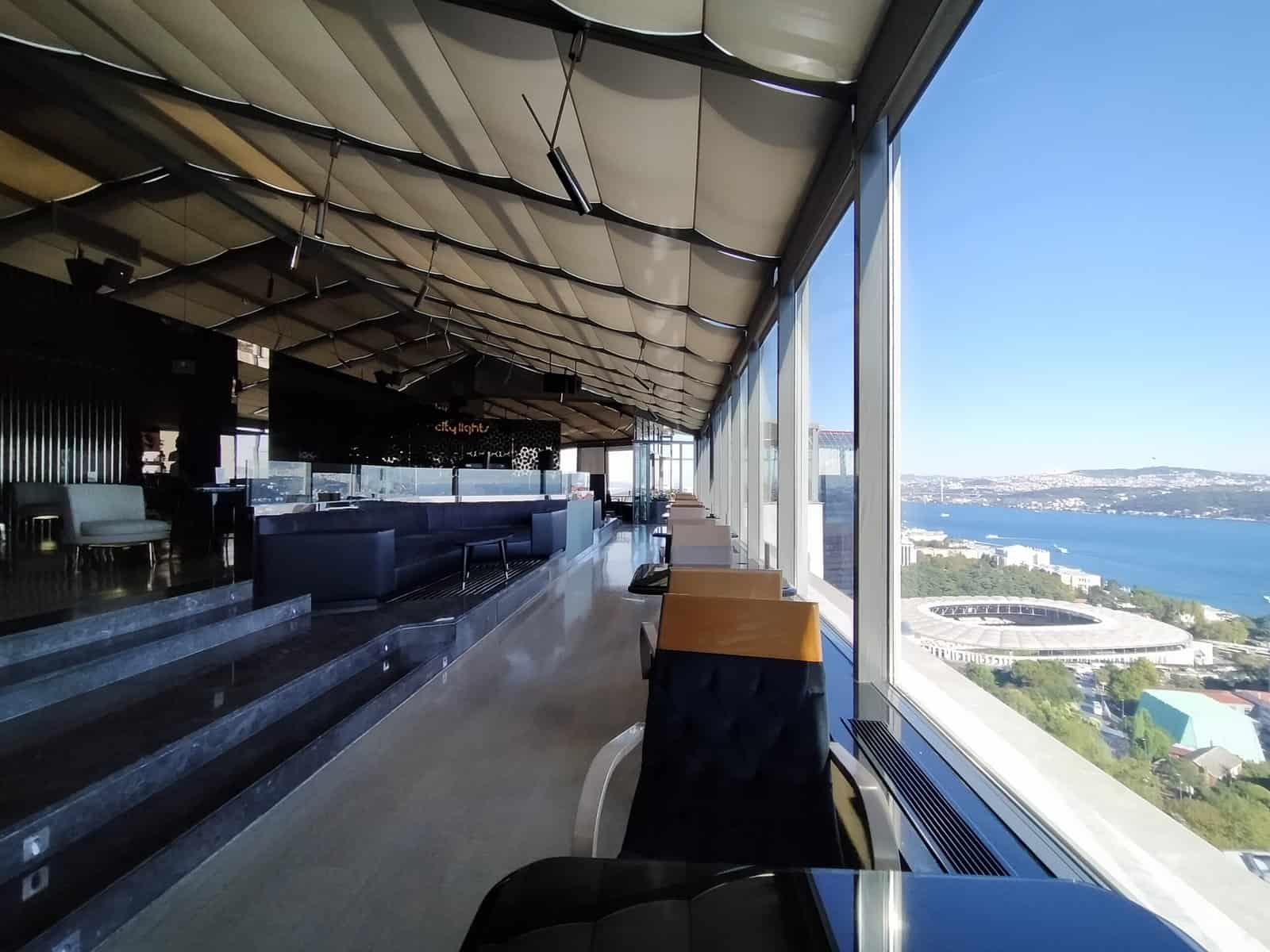 De City Lights Bar is een plek waar je op ieder moment van de dag uren kunt zitten: het heeft een adembenemend uitzicht over de Bosporus.