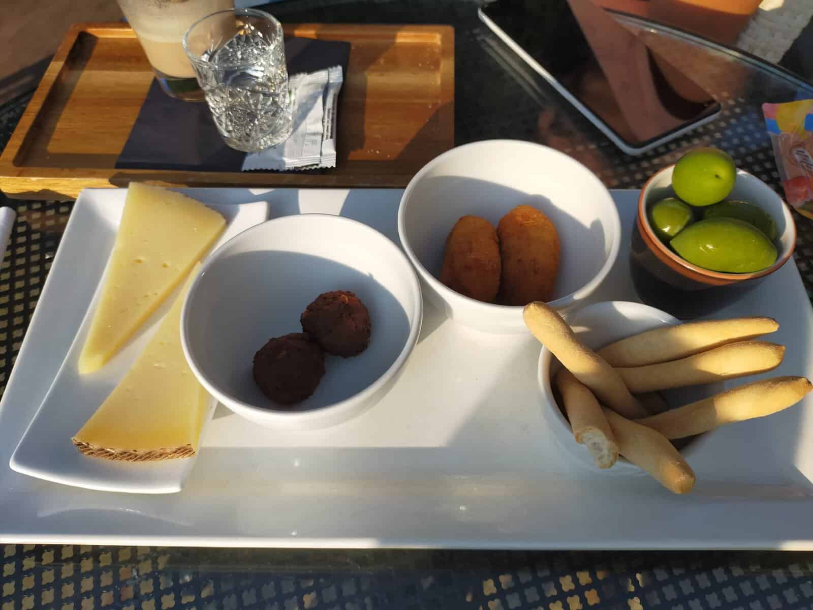 Uiteindelijk komen de Spaanse hapjes die onderdeel uitmaken van het Executive Menu. Deze zijn van lage kwaliteit en zou ik de volgende keer overslaan. Desondanks hebben wij een uitstekende avond gehad op het terras: een relaxte sfeer, prachtig weer, vriendelijk enthousiast personeel en de rosé wijn smaakte goed.