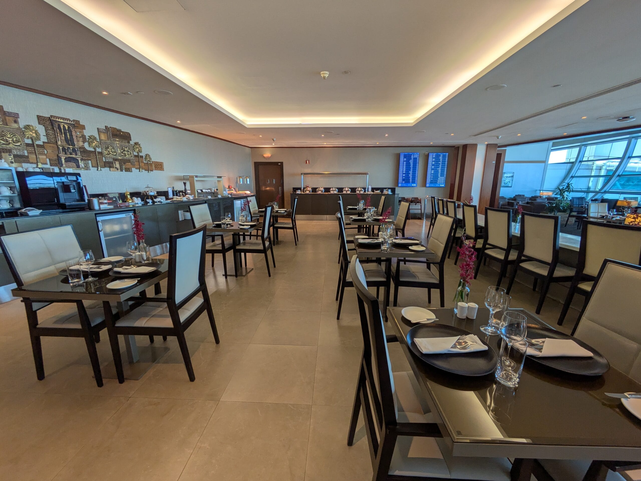 Met het eten en drinken zit het wel goed in de lounges. In deze lounge is dit allemaal beschikbaar op dezelfde plaats, namelijk op de begane grond achterin het restaurant. De kwaliteit van het eten is hoog, zoals je verwacht in een First Class lounge.