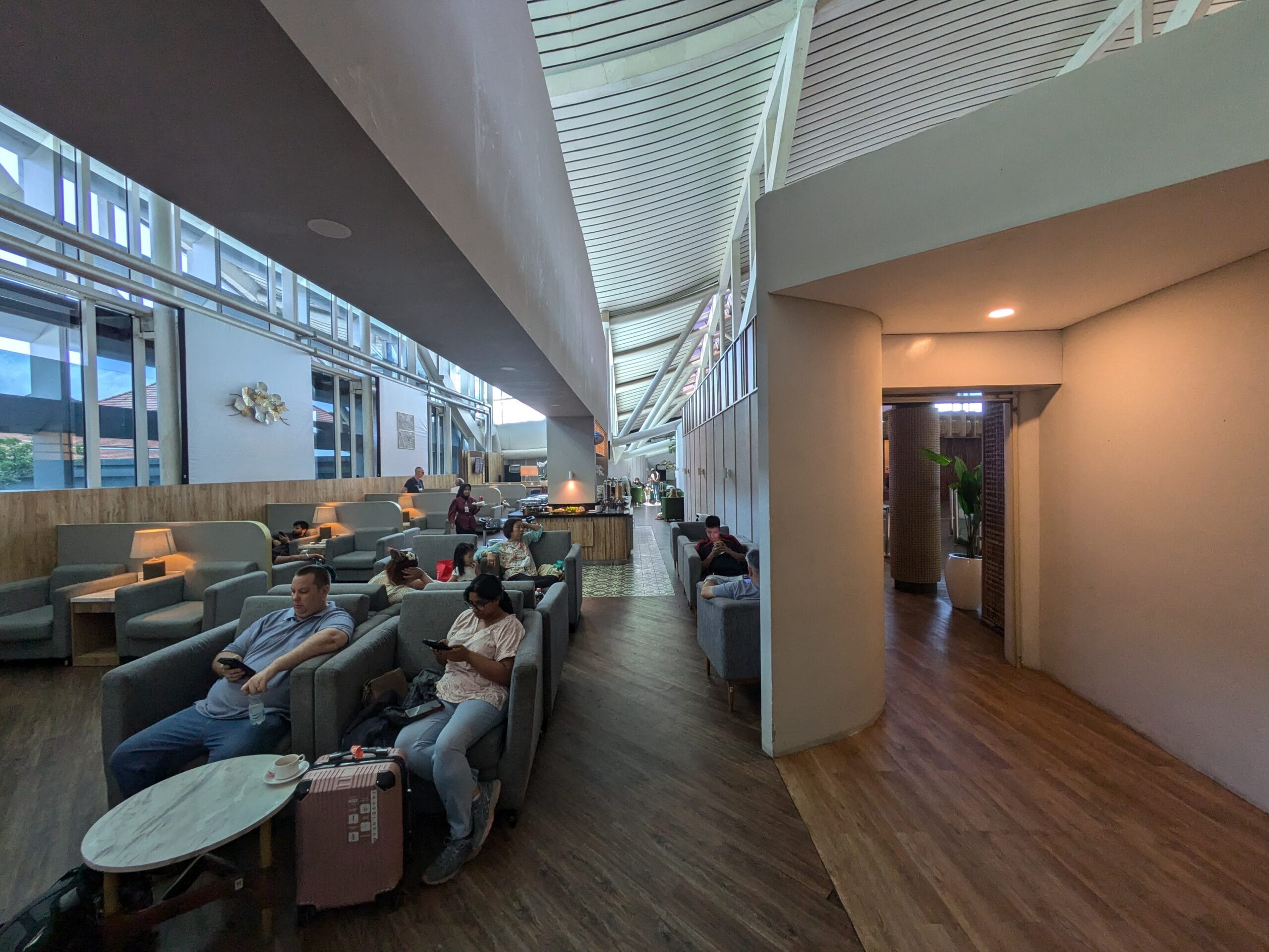 De ruimte is vrij diep, wat me enigszins doet denken aan een kleinere versie van de de Plaza Premium Lounge in Jakarta. Er zijn geen douches aanwezig in de lounge. Dit is aan de ene kant begrijpelijk omdat het aantal overstappende passagiers beperkt kan zijn. Aan de andere kant zijn er veel vluchten die ’s avonds laat vertrekken. Na een dag op het warme Bali is het dan prettig om eerst even te kunnen douchen.