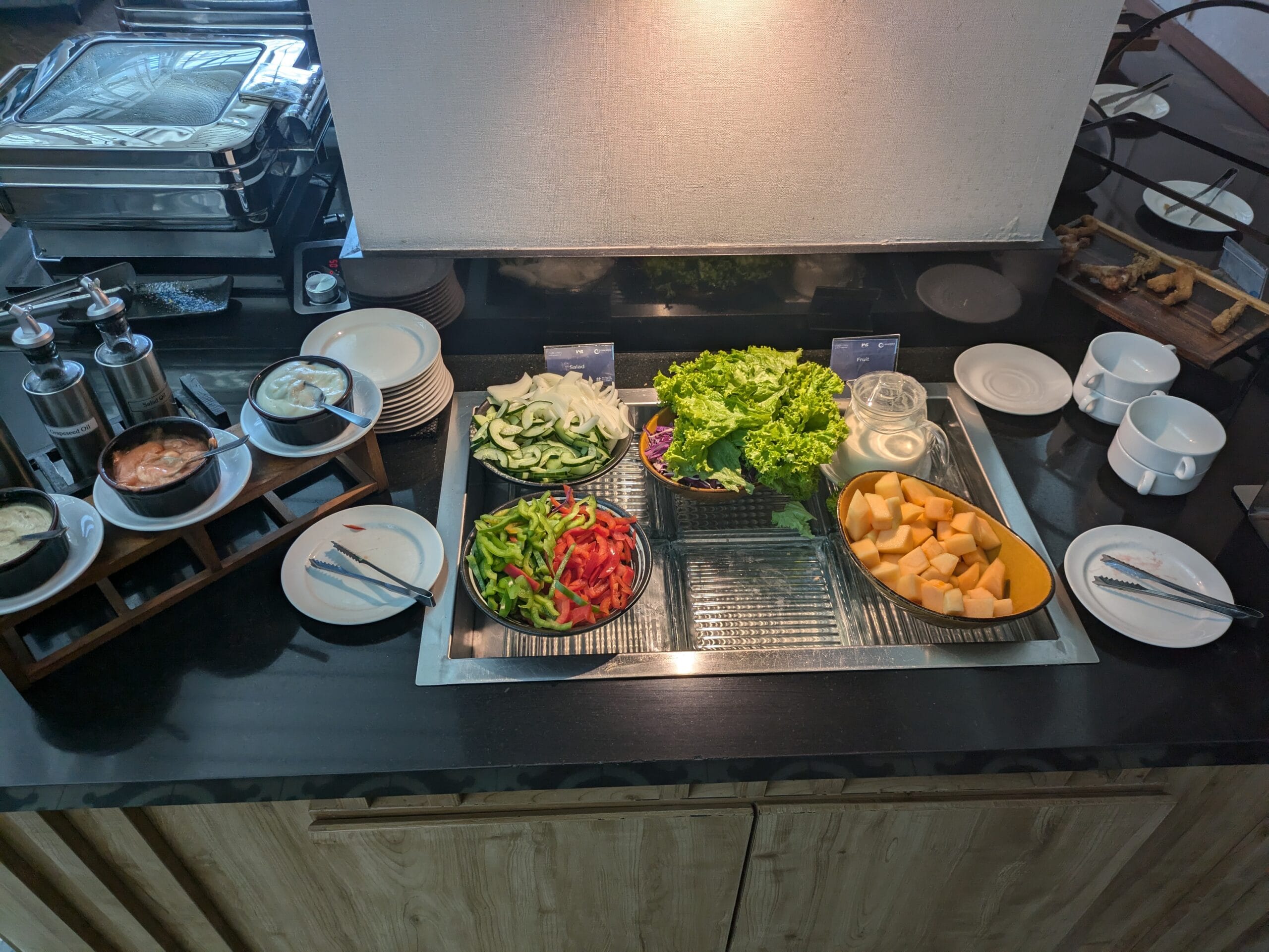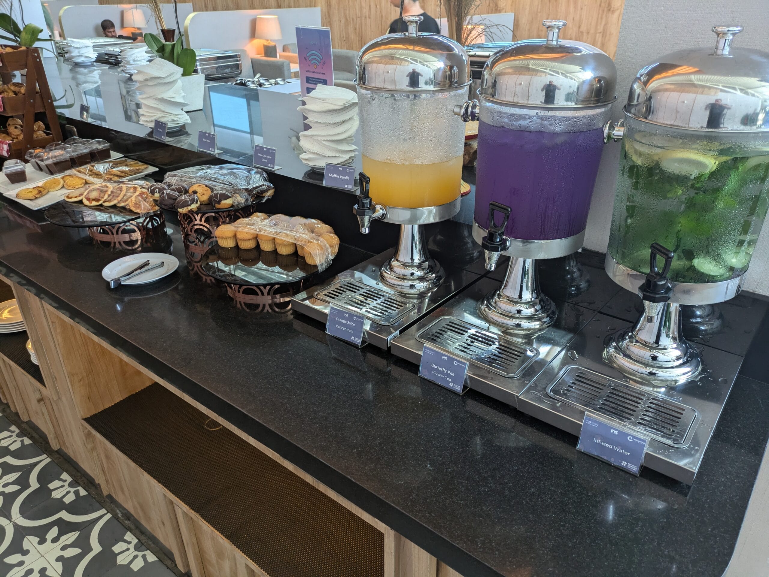 Ook als je van zoetigheid houdt is er voldoende verkrijgbaar. Pannenkoeken, muffins, donuts, etc. Verder is er infused water en andere vruchtensappen. Er is ook een kleine koelkast met frisdrank beschikbaar. Tot slot is er een saladebar beschikbaar.