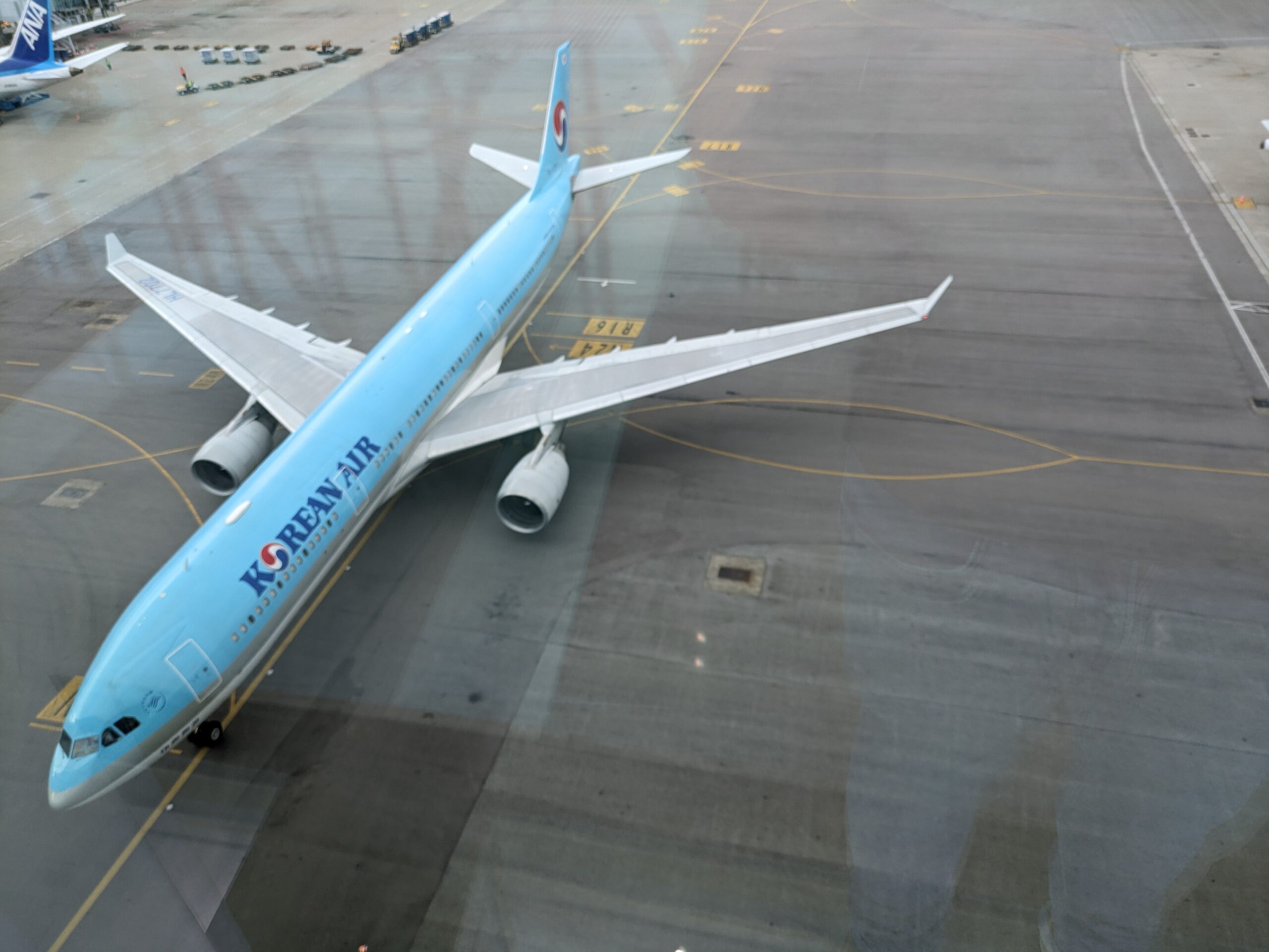 Maar goed: ik kom hier voor de Intervals Bar. Maar niet voordat er nog een keer een Korean Air A330 onder me door rijdt. Dit brengt me terug naar 2018 toen ik met Korean Air in de Boeing 747-8 van Hong Kong Kong naar Incheon vloog.