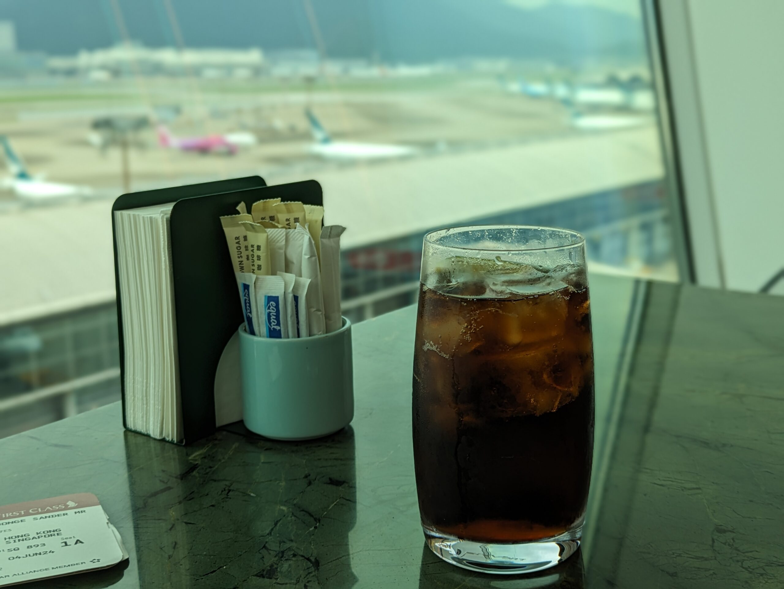Ik drink deze Cola Zero zo langzaam mogelijk op. Ondertussen geniet ik van de regelmatig opstijgende vliegtuigen. Een heerlijke plek!