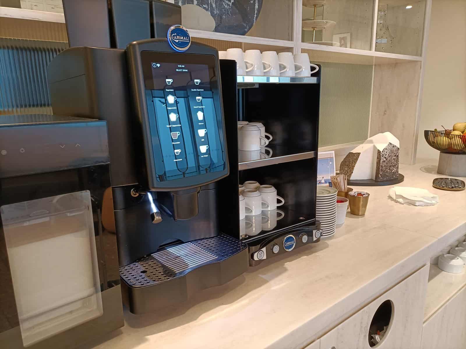 Naast een koffiemachine is er nog een aanbod aan frisdrank en bier.