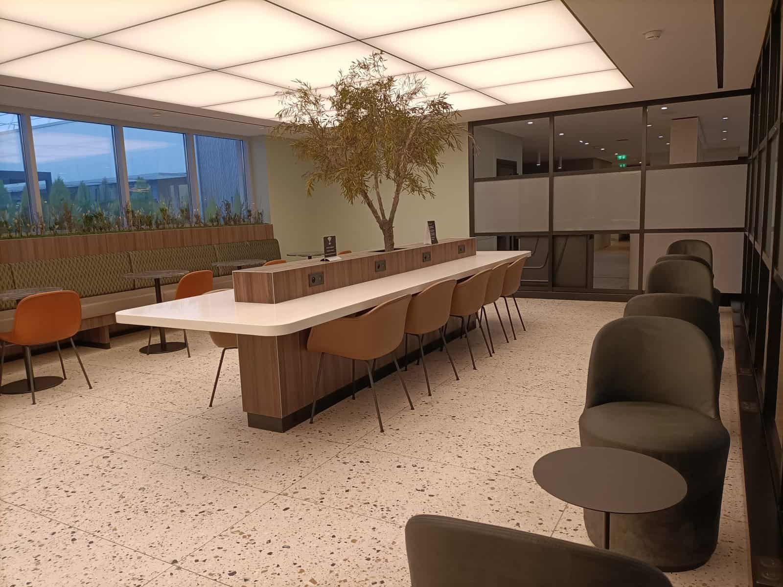 Wat mij betreft een fraaie lounge! Ten opzichte van de lounges van Air France is het hier aanzienlijk rustiger, mede dankzij de aanzienlijke oppervlakte. Daarnaast is het design van de lounge mooi om te zien. Overal kun je een stopcontact vinden, wat echt een enorm voordeel is. De wijnbar en het buitenterras zijn fijne toevoegingen die de lounge extra karakter geven.