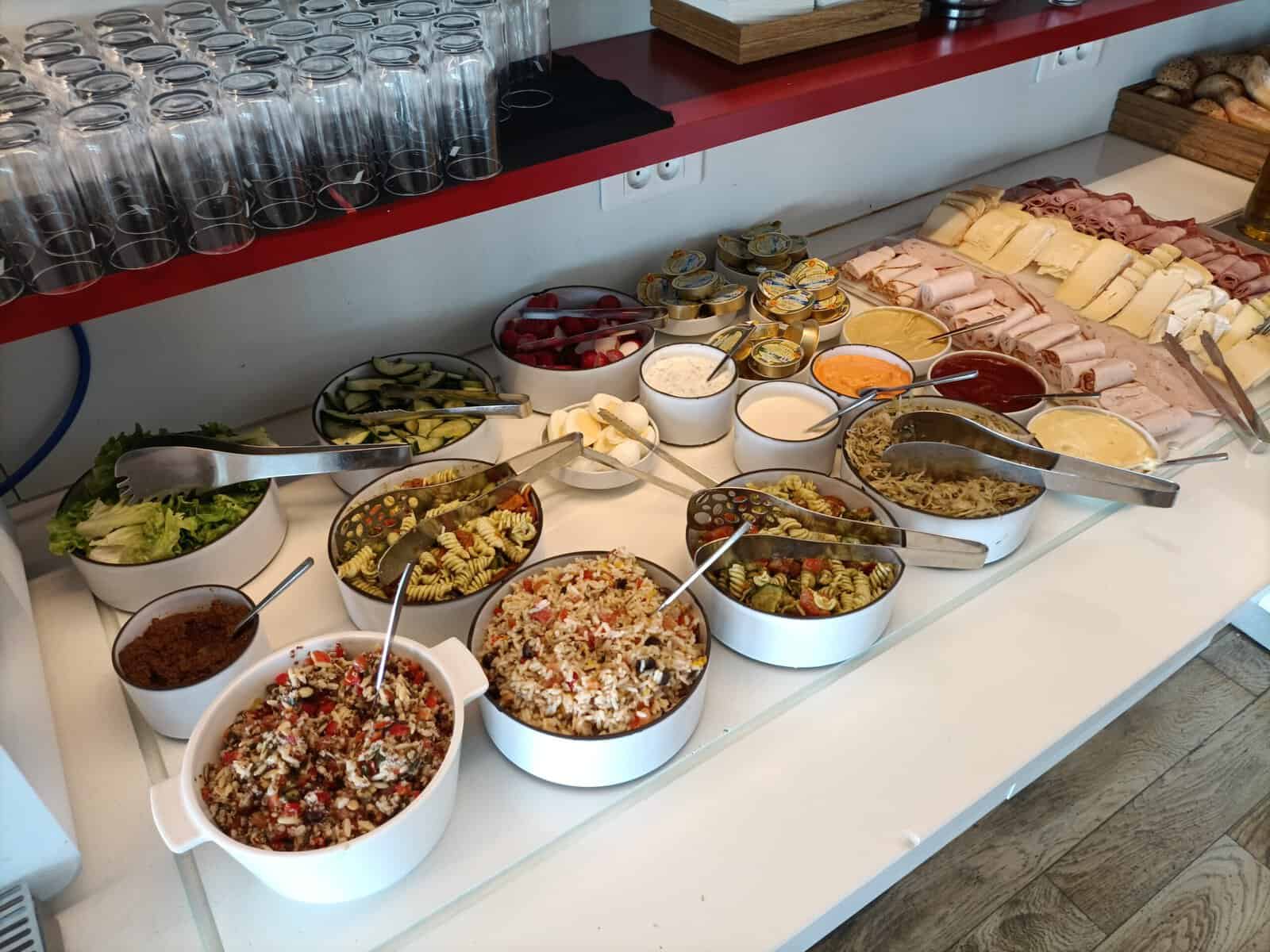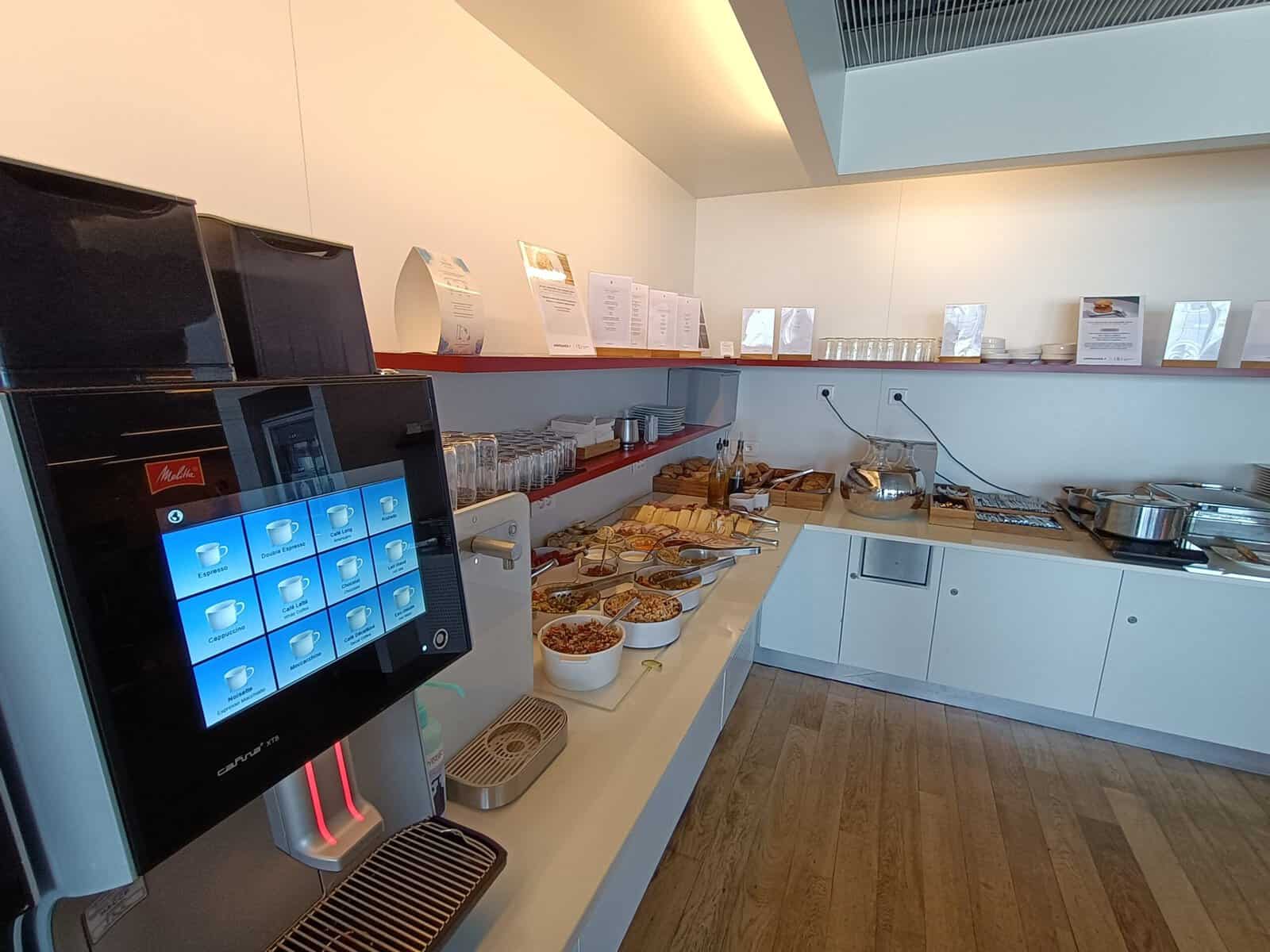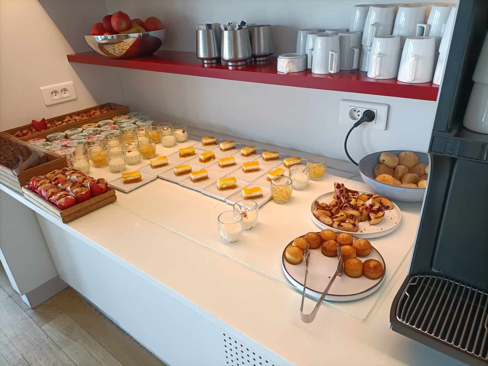 In de lounge is een redelijk goed aanbod aan eten en drinken beschikbaar. Zo is er een salade, broodjes, kazen en vleeswaren.