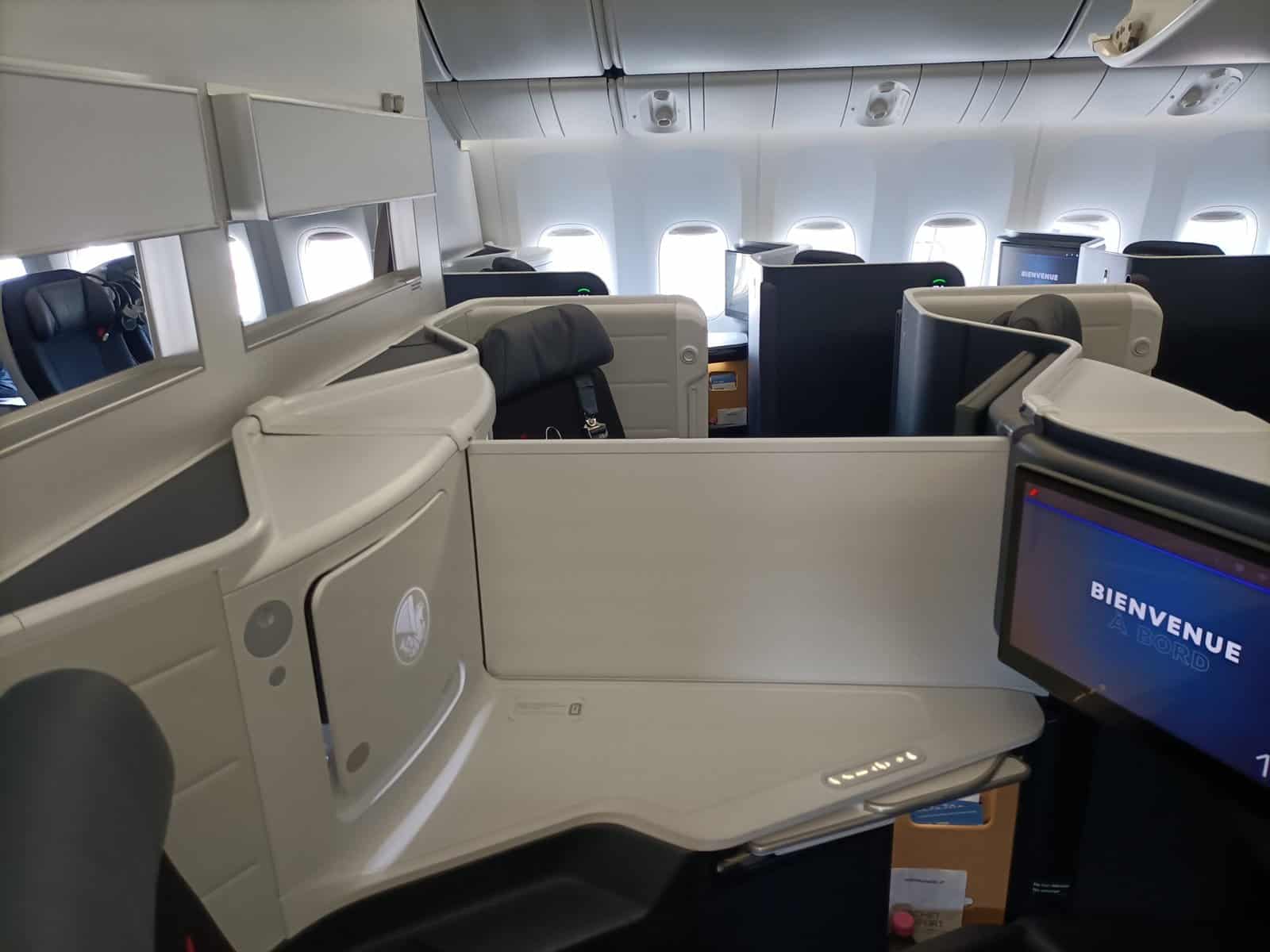 Bij binnenkomst passeren we de nieuwe Business Class van Air France. Een reversie herringbone stoel die is voorzien van een deur. Je kunt hier een review van Air France in de nieuwe Business Class lezen.