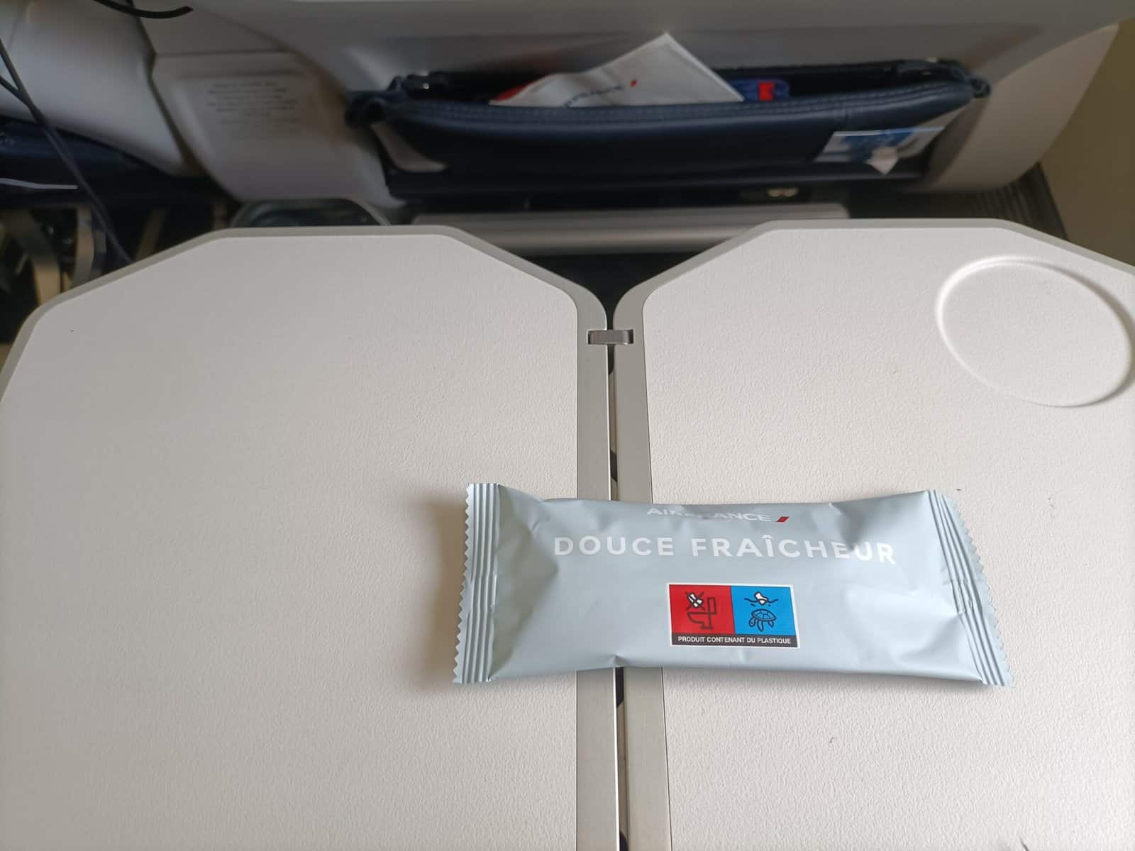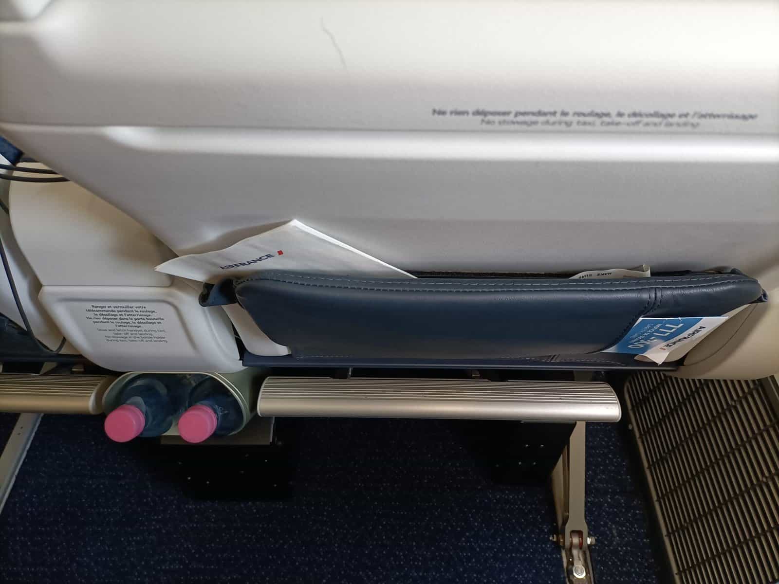 In de stoel is een flesje water aanwezig en dat is maar goed ook. Er wordt namelijk geen welkomstdrankje aangeboden. Dit is opmerkelijk omdat het merendeel van de concurrentie dit wel doet, zoals Cathay Pacific, Swiss, Singapore Airlines en zelfs Lufthansa. Ik vind het dan ook opmerkelijk dat Air France er voor kiest om dit niet te doen.