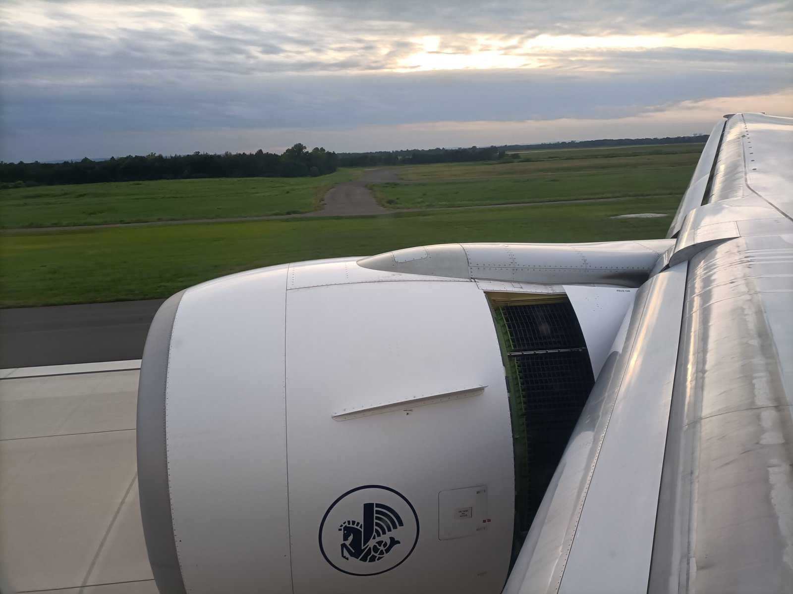 Na een vertraging van ruim een half uur beginnen we aan de pushback en taxiën we naar de startbaan.