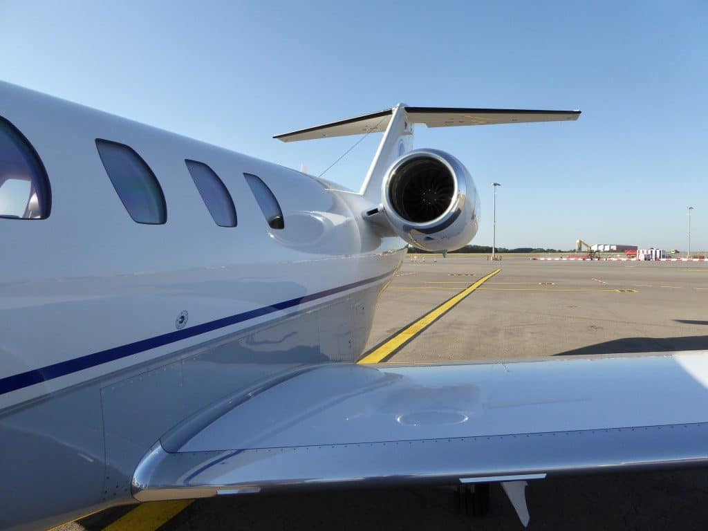 Als we aankomen bij de Cessna Citation staat de captain ons al op te wachten.