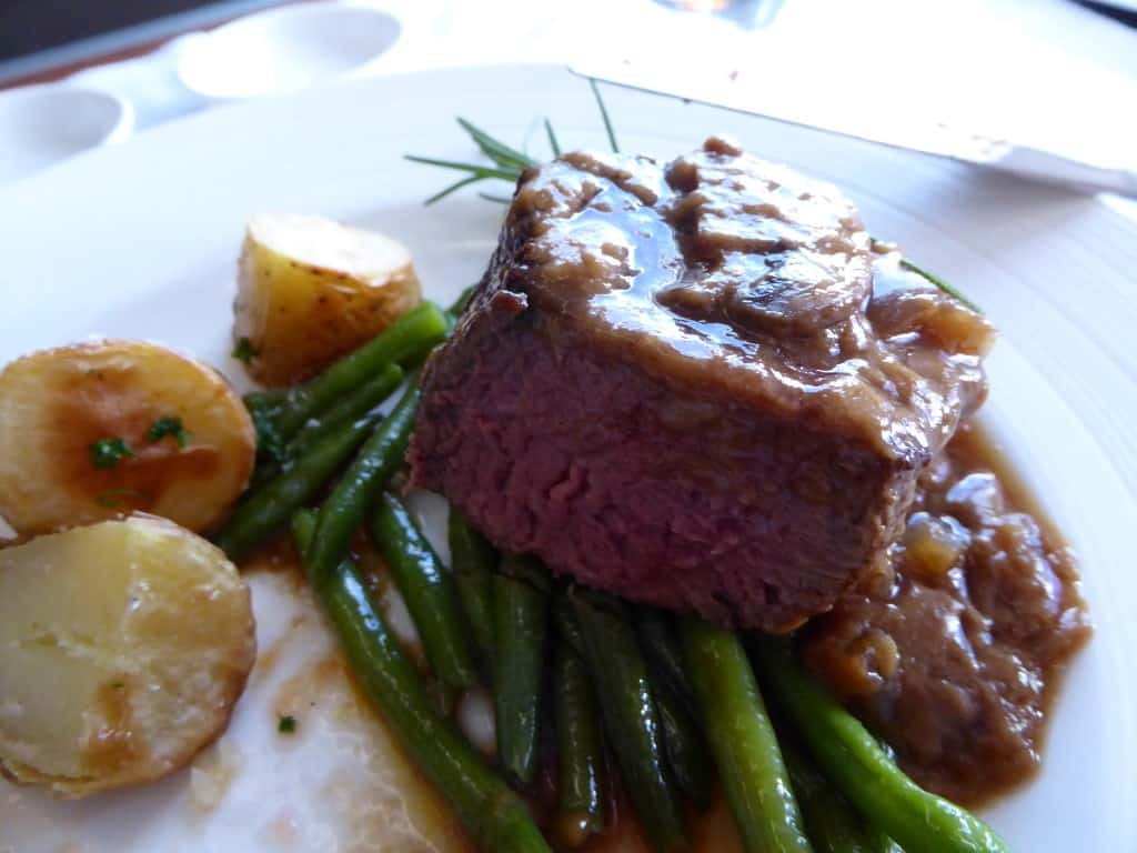 Als hoofdgerecht heb ik gekozen voor Ossenhaas met champignonsaus. Een typisch Indonesisch hoofdgerecht ontbreekt namelijk op de kaart.De kwaliteit van het hoofdgerecht maakt echter veel goed.