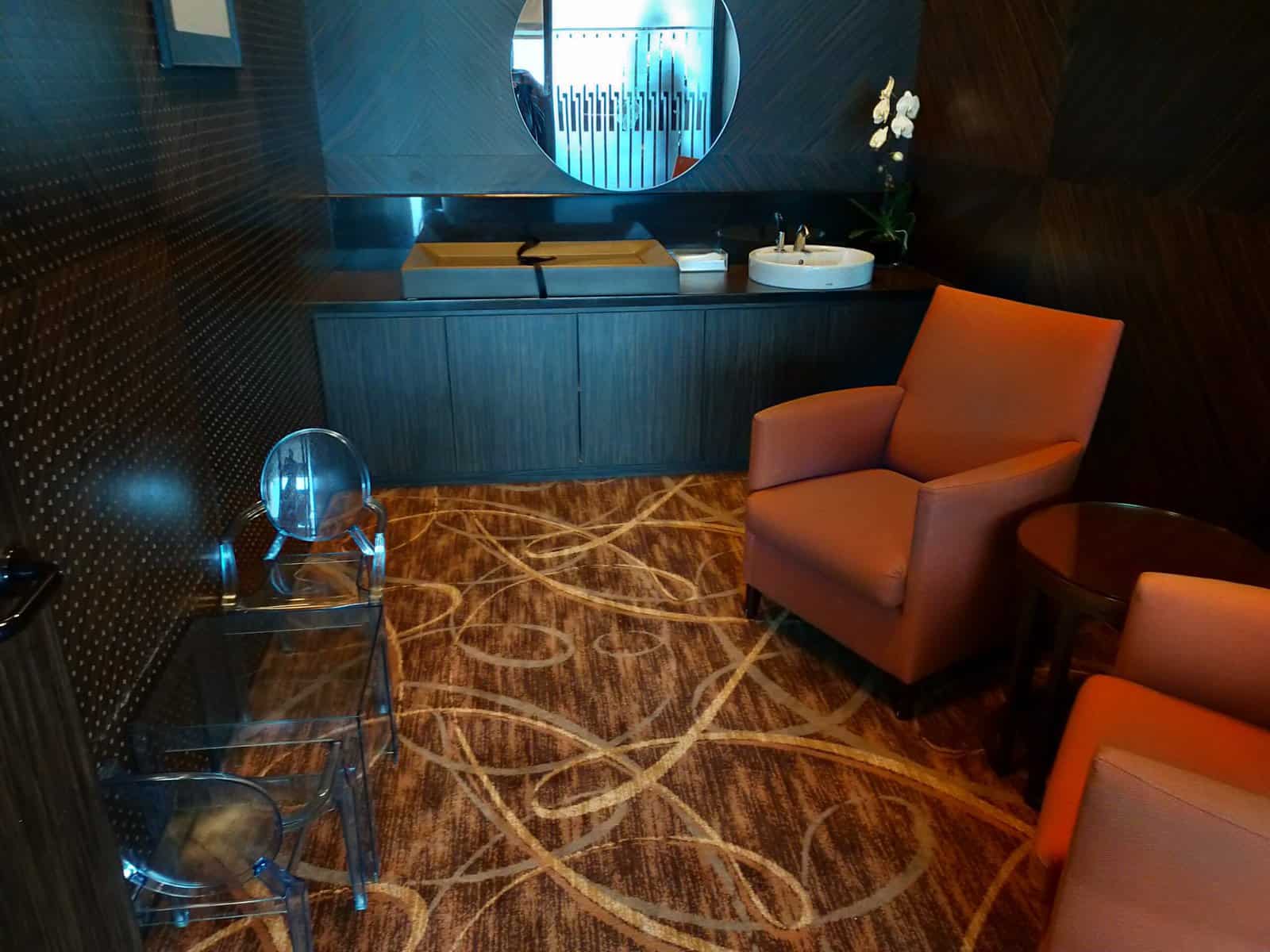 De lounge biedt dus een goede start die zorgt voor een smetteloze start. Wel is het behoudens de uitstekende champagne een lounge met weinig toeters en bellen. Een kamer met een bed of de mogelijkheid voor een massage ontbreken. Ook is het eten prima, maar geen “fine dining”. Het klinkt natuurlijk decadent, maar sommige concurrenten bieden dit wel.