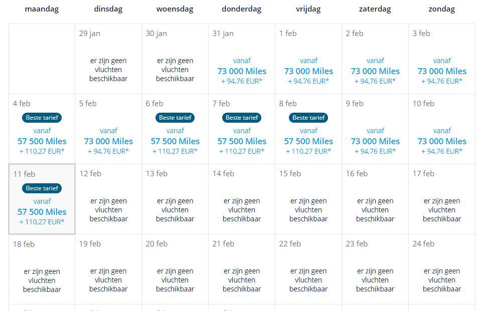 Helaas moet je vandaag de dag maar liefst 57.500 Flying Blue miles betalen, veel meer dan bij het gemiddelde frequent flyer programma.