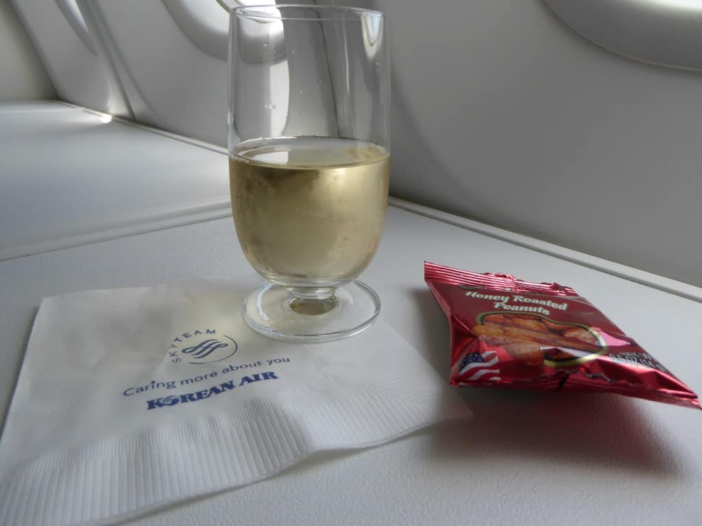 Korean Air 747-8 Business Class: Champagne en nootjes vooraf